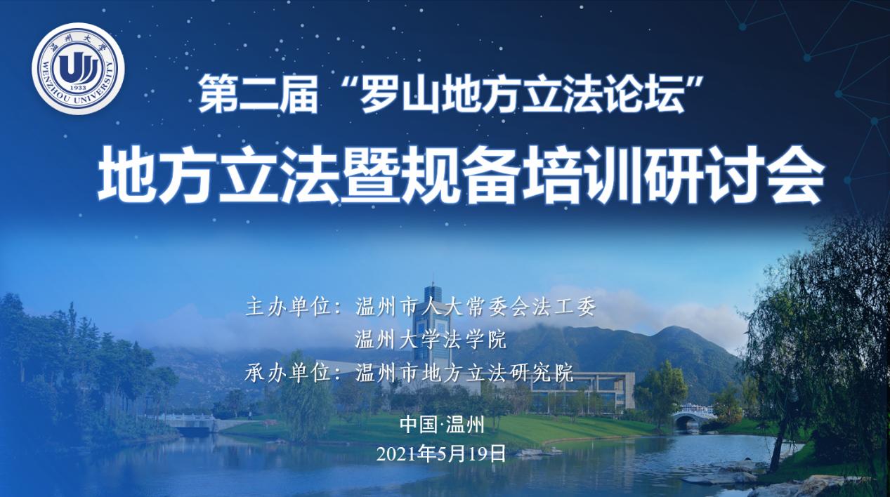 2021年5月19日,由温州市人大常委会法工委、yl永利集团官网登录主办,温州市地方立法研究院承办的第二届“罗山地方立法论坛”——“地方立法暨规备培训研讨会”在坐落于美丽的大罗山下的永利集团官网南校区岩松堂白鹿厅隆重举行。