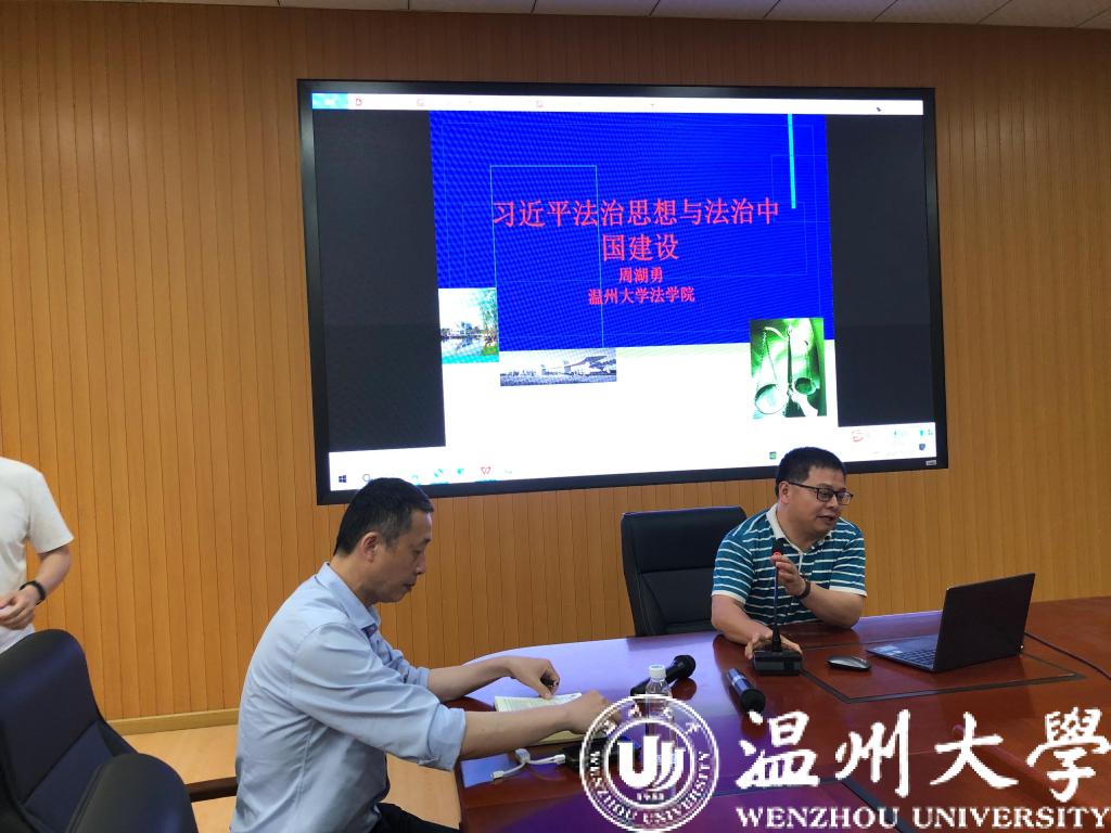 接着,周经理围绕《习近平法治思想与法治中国建设》做了专题分享。专题围绕习近平法治思想概述、习近平关于法治中国基本理论的论述、习近平关于法治中国推进方略的论述、习近平关于关于法治重大关系的论述、将习近平法治思想纳入人才培养方案的思考等五个方面进行阐述,指出习近平法治思想深刻回答了全面依法治国由谁领导、为了谁等根本问题,科学指出了新时代法治中国建设的总方针。周经理强调习近平法治思想是法学教育和法治人才培养的根本遵循,在法学专业教学中应贯穿融入习近平法治思想,全面培养德法兼修、明法笃行的合格法治人才。