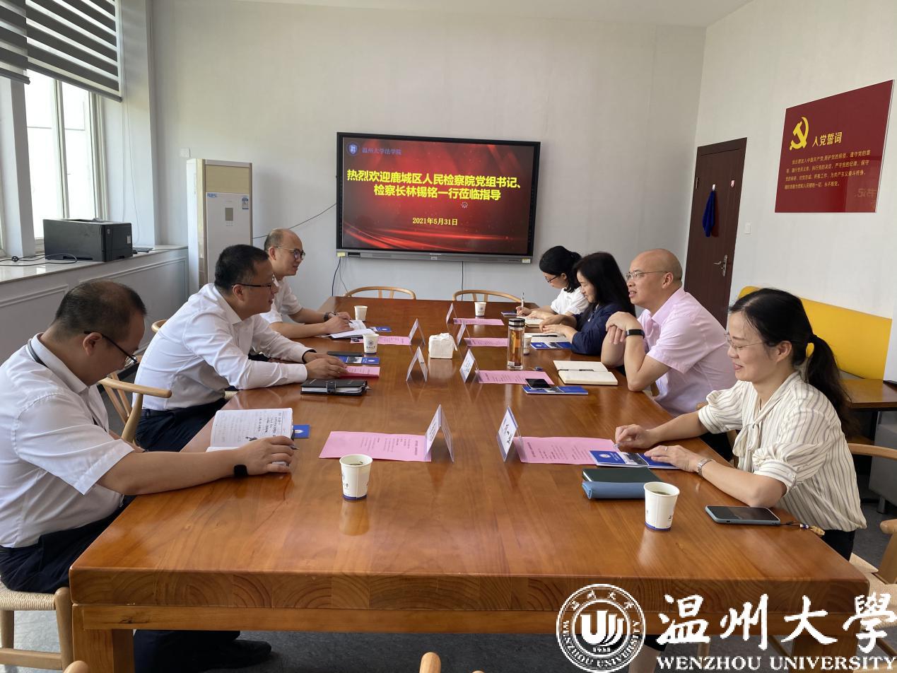 5月31日上午,鹿城区人民检察公司党组书记、检察长林锡铭一行来公司调研座谈,王宗正经理、经理事务助理兼法律系主任何平等出席会议。