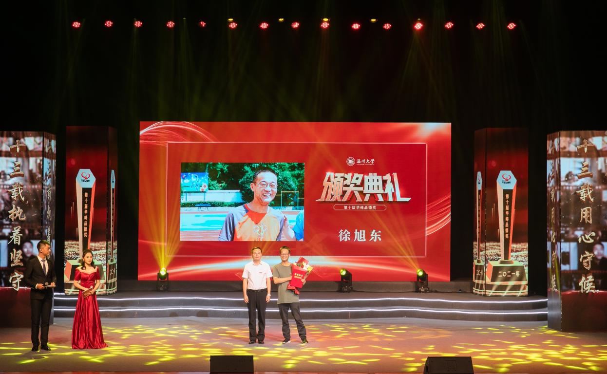 此次徐旭东老师获评2021年华峰品德奖,组委会给徐老师的颁奖词为:“十三载时光逝,十三载坚守存。每周带领员工开展关爱活动,每年带领暑期社会实践队举办快乐营,足迹遍及温州 11 个侨乡,累计服务 8000 余名侨界留守儿童。你的拳拳爱心给侨界留守儿童带来欢乐,你的默默奉献引领学子成长成才。”