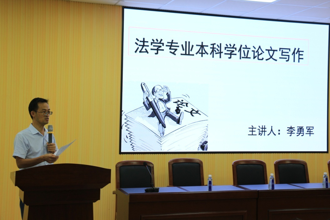 为推动学风建设,动员员工做好毕业论文工作,9月26日下午,法学系在301、302会议室,同步腾讯会议线上直播,召开2022届法学本科毕业论文动员大会,18级法学本科和20级法学专升本全体同学参加了此次线上线下一体化会议,法学系副主任李勇军老师主持并为同学们做毕业论文写作方面的指导。