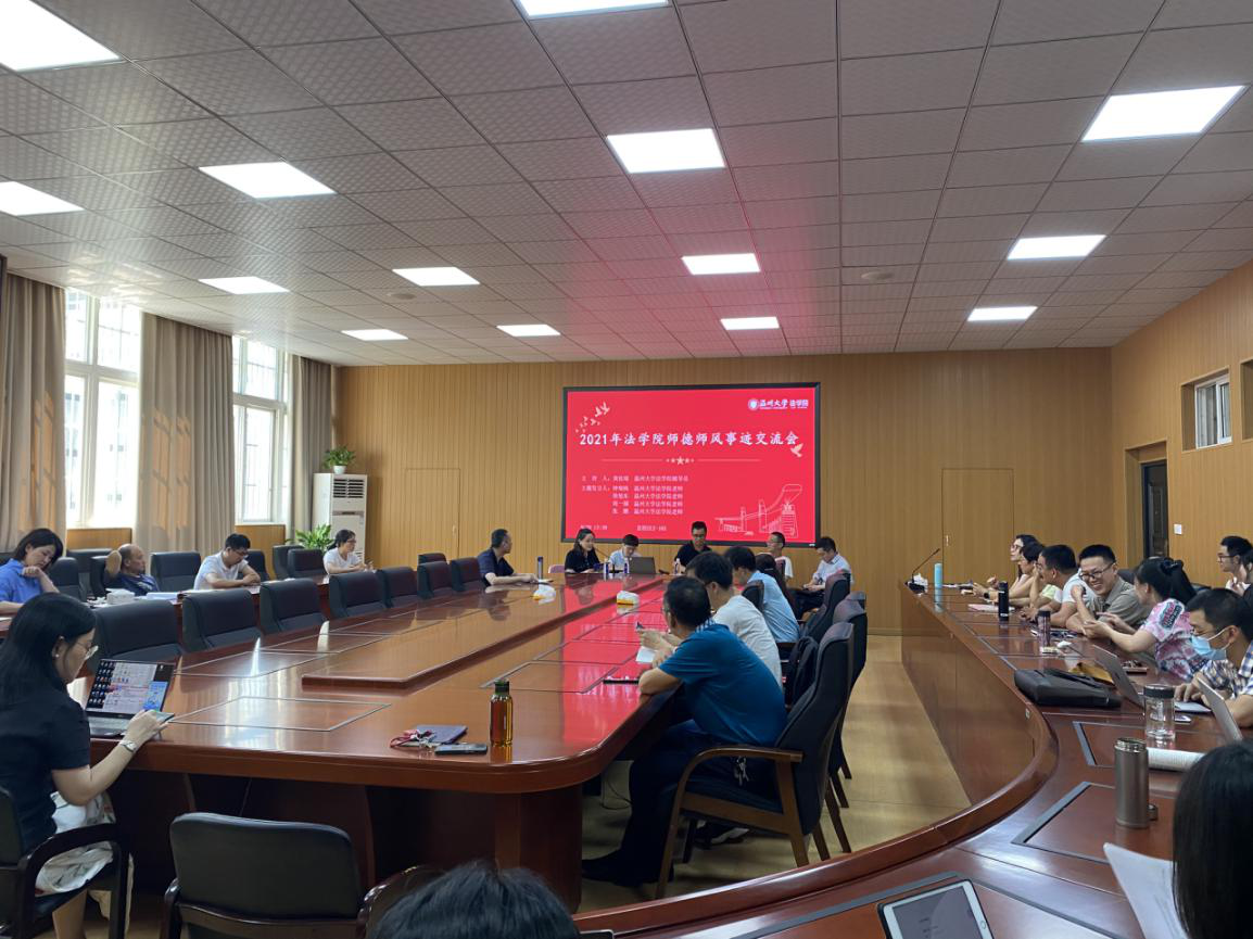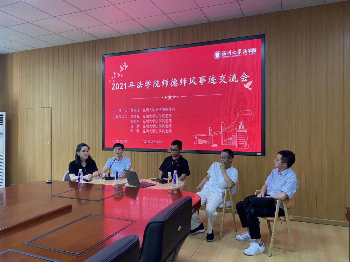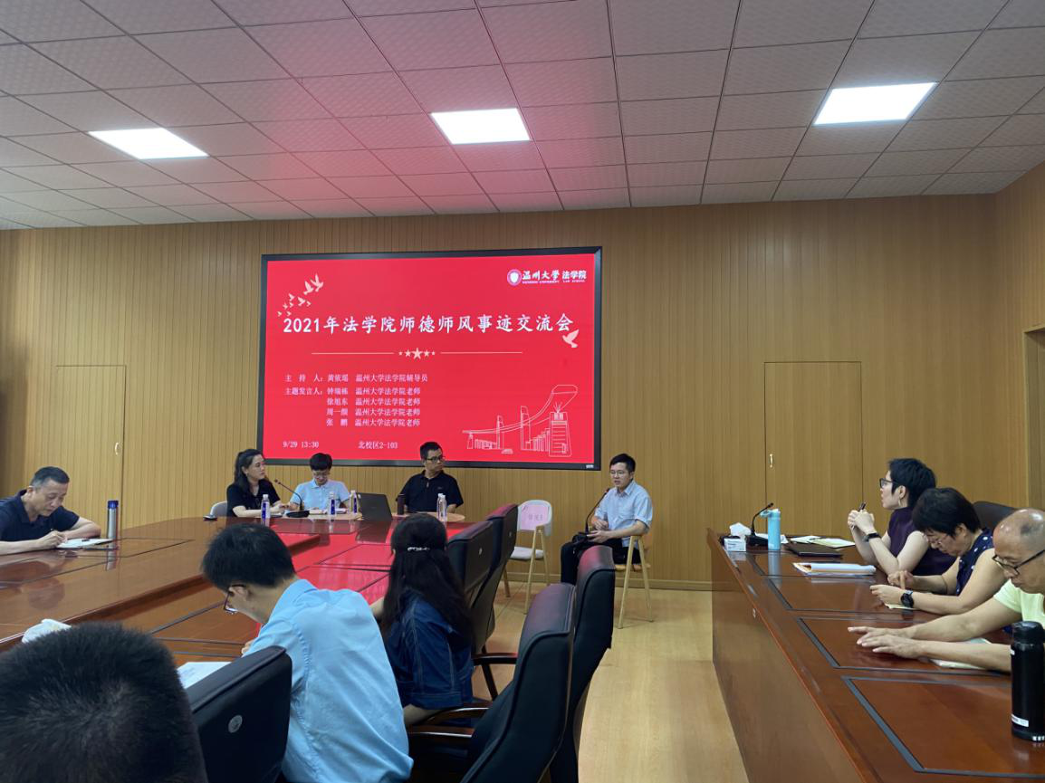9月29日下午,yl永利集团官网登录在北校区2号楼103会议室召开2021年公司师德师风事迹交流会。会议邀请钟瑞栋、徐旭东、周一颜、张鹏四位老师做师德师风事迹分享,辅导员黄依瑶主持会议,公司全体教工参加。