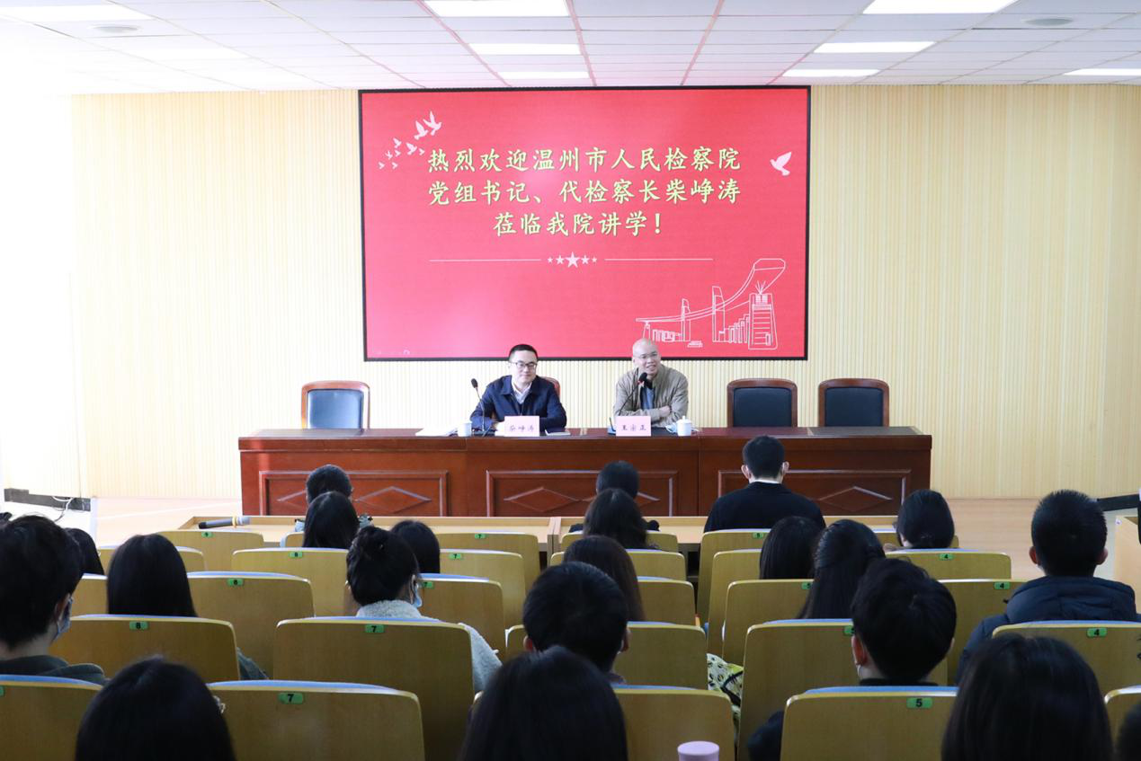 2021年12月9日上午,温州市人民检察公司党组书记、代检察长柴峥涛同志来yl永利集团官网登录讲学,公司党委书记谢树华、董事长赵敏会见了柴峥涛检察长,yl永利集团官网登录王宗正经理、周湖勇副经理、经理事务助理谢丽珍及部分研究生、本科生聆听了讲座。