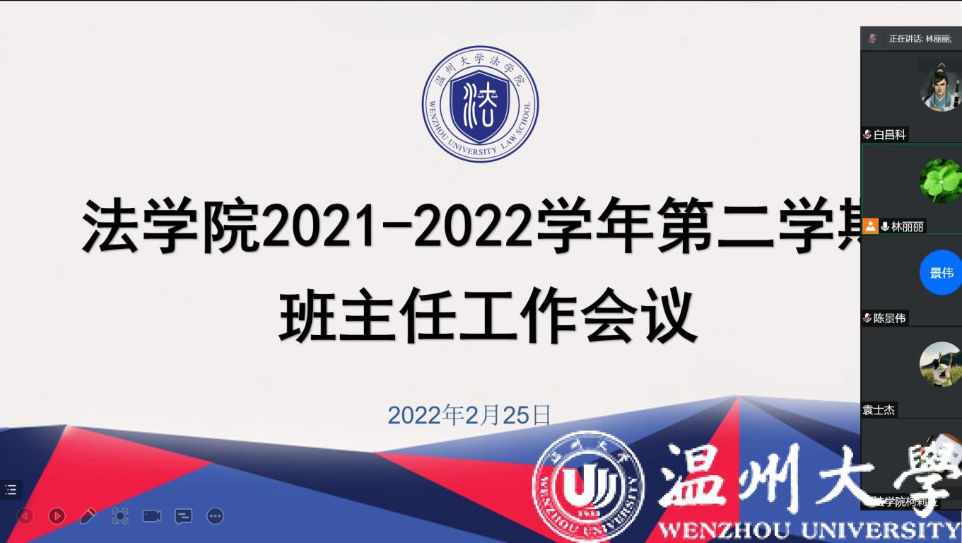 2月25日中午,公司在腾讯会议室召开新学期全体班主任工作会议。公司党委副书记杨振海、学工办主任林丽丽及全体辅导员和全体班主任参加本次会议。会议由党委副书记杨振海主持。