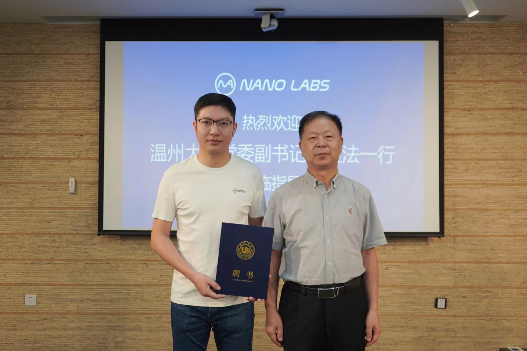 孔剑平员工对近年来母校的快速发展感到自豪,表达对母校发展的支持和关心,愿意创造更多价值助力母校发展。他详细介绍公司产品特性、技术优势以及公司运行情况,并介绍豪微科技母公司纳斯达克上市主体Nano Labs的基本情况,并带领参观演示公司产品,双方就元宇宙、区块链等行业话题进行深入探讨。座谈中,孔剑平员工畅谈自己的求学时光和创业经历,向各位生动呈现一幕幕创业故事。吴金法高度评价和肯定孔剑平取得的创业成绩,他指出,孔剑平求学期间的老员工创业经历以及毕业后的跨界创业经历,就是温大校训“求学问是,敢为人先”的鲜明写照,勉励大家要发扬温大精神。