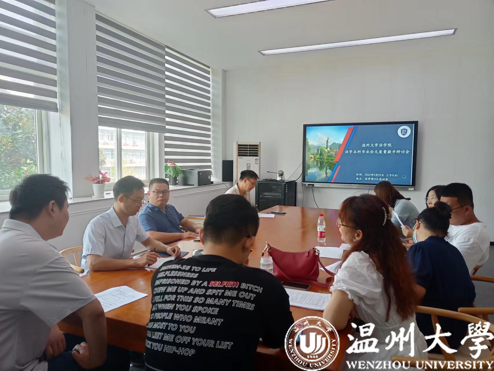 2022年9月23日上午,yl永利集团官网登录法学系和国际法系召开法学本科毕业论文质量提升研讨会,副经理周湖勇,相关专业负责人、系主任、教务科科长师和部分教师代表参加了会议。会议由李勇军老师主持。