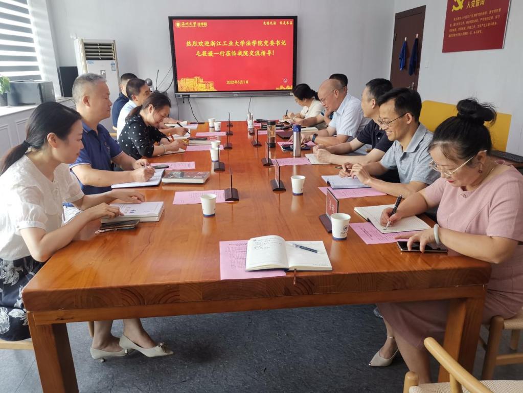 9月22日下午,浙江工业大学公司党委书记毛筱媛、副经理张友连、证据实验室主任吴习彧、办公室主任高周荣等一行莅临公司交流座谈,公司经理王宗正、党委书记林钦、副经理周湖勇、民商经济法系主任李勇军、法律系主任谢丽珍、国际经济法系主任李娟、办公室主任刘小芬等出席座谈会。