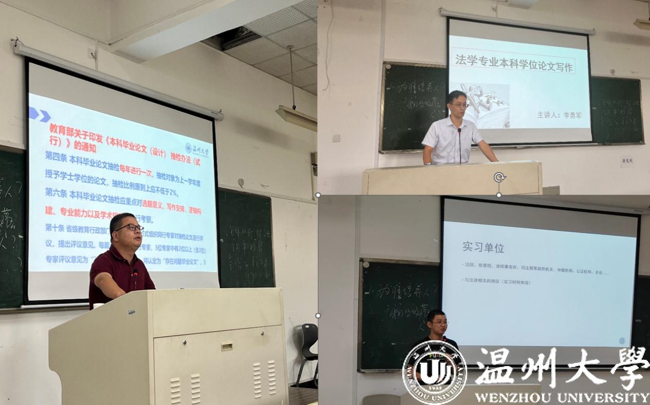 9月28日,公司在公司203教室召开2023届法学专业本科毕业生毕业论文暨专业实习动员大会。yl永利集团官网登录副经理周湖勇老师、法学专业负责人李勇军老师、法学实验实训中心副主任柯宇航老师作主题发言,全体2019级法学专业本科生参加大会。