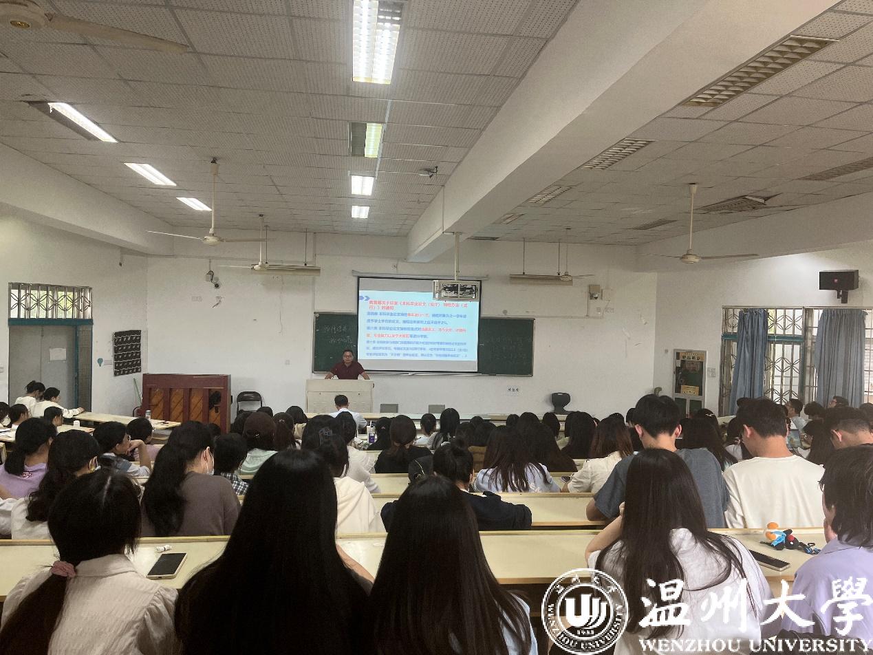 周湖勇老师根据教育部关于印发《本科毕业论文(设计)抽检办法(试行)》的通知,以及自身组织参与实践教学的丰富经验,向全体师生强调了毕业论文、专业实习的重要意义;呼吁员工珍惜毕业论文的写作锻炼机会,通过毕业论文充分展示自己搜集整理信息资料的能力,研究方案的设计、策划能力,书面表达创新性观点的能力;并就毕业论文和专业实习中的注意事项进行了温馨提示。李勇军老师向全体员工详细说明了毕业论文的写作要求,包括论文格式要求、选题与题目凝练、框架结构的安排、写作与论证、研究方法的使用、资料的引用、修改与完善等诸多方面。柯宇航老师介绍了专业实习的具体安排,特别提醒了全体员工注意人身和财产安全、遵守实习单位的规章制度、注意职场文明礼仪以及遵守防疫政策。