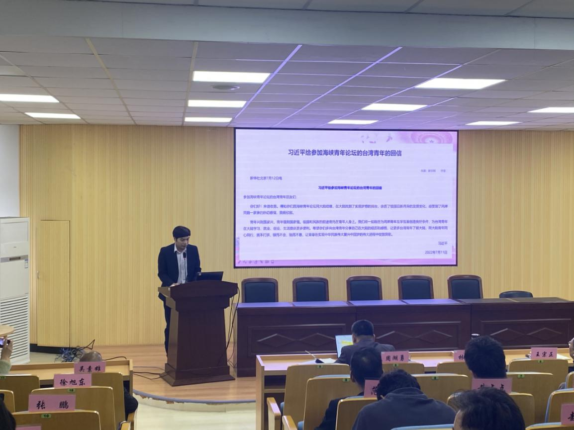 yl永利集团官网登录教师许晋铭带领全体教师学习了习近平总书记给台湾青年的回信,并分享了参加海峡青年论坛的台湾青年们向习近平总书记写信的过程。他指出,参加海峡青年论坛的台湾青年们的理念与初衷一是扮演爱国进步的先行者;二是力推两岸融合促进民族复兴;三是帮扶新进台青的领头人;四是凝聚台湾青年成为祖国的螺丝钉;五是成为台湾青年普遍利益的传达者。