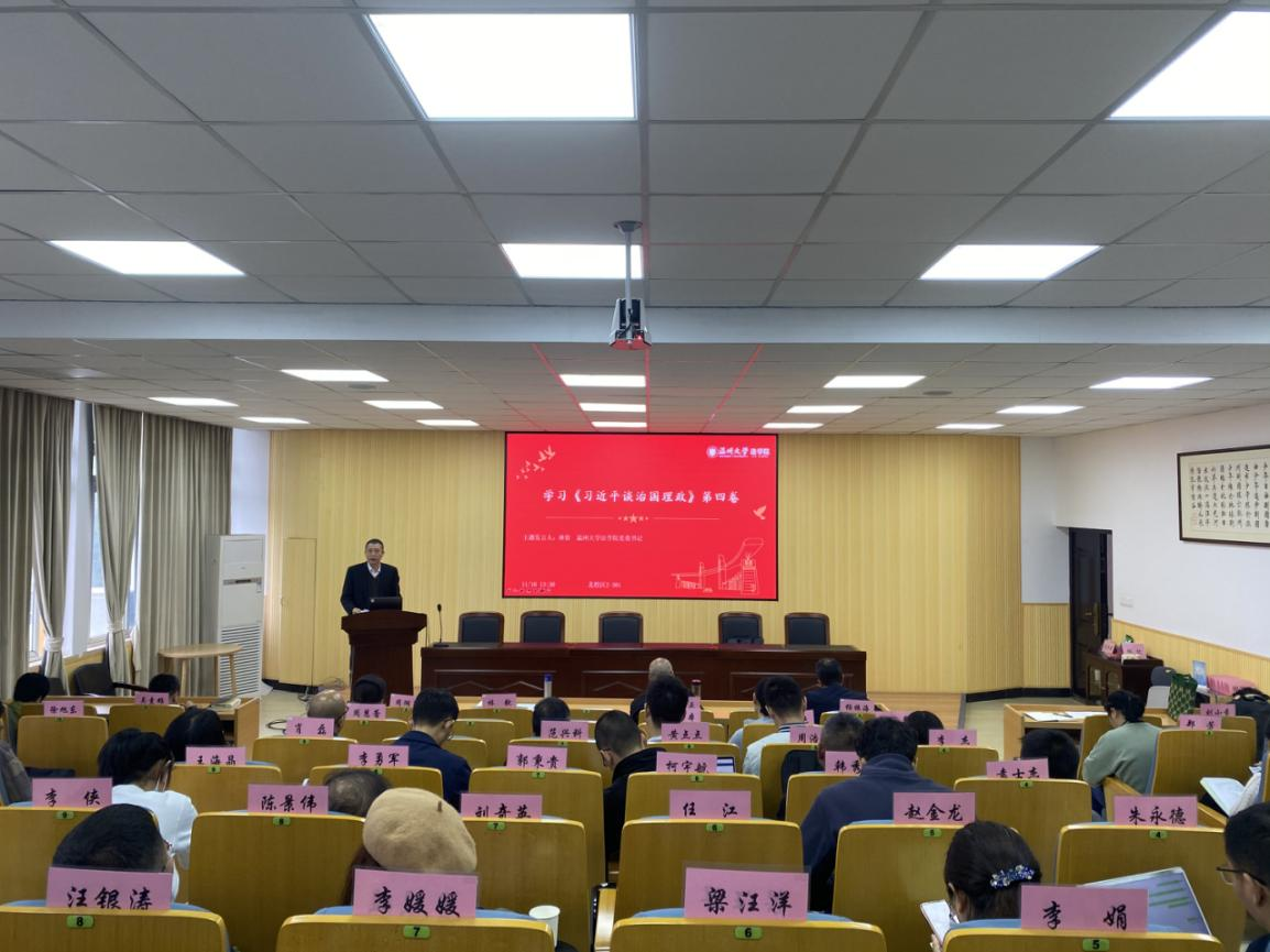 党委书记林钦带领全体教师学习了《习近平谈治国理政》第四卷相关内容。《习近平谈治国理政》第四卷体现了“两个结合”的理论创新,体现了“十个明确”的丰富发展,由“三大时代课题”贯穿全书。我们要带着责任、带着信仰、带着情感认真学习研读,切实用习近平新时代中国特色社会主义思想武装头脑、指导实践、推动工作,不断汇聚起新时代新征程上团结奋斗、勇毅前行的磅礴力量。