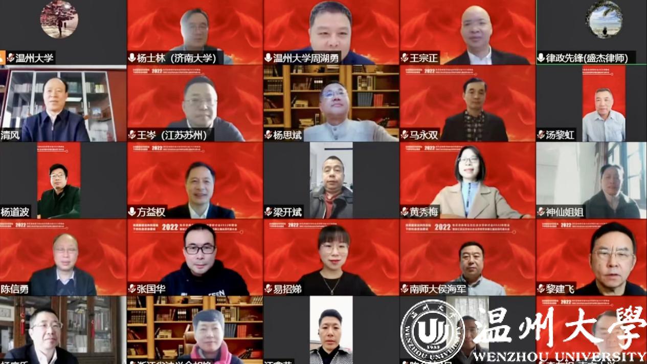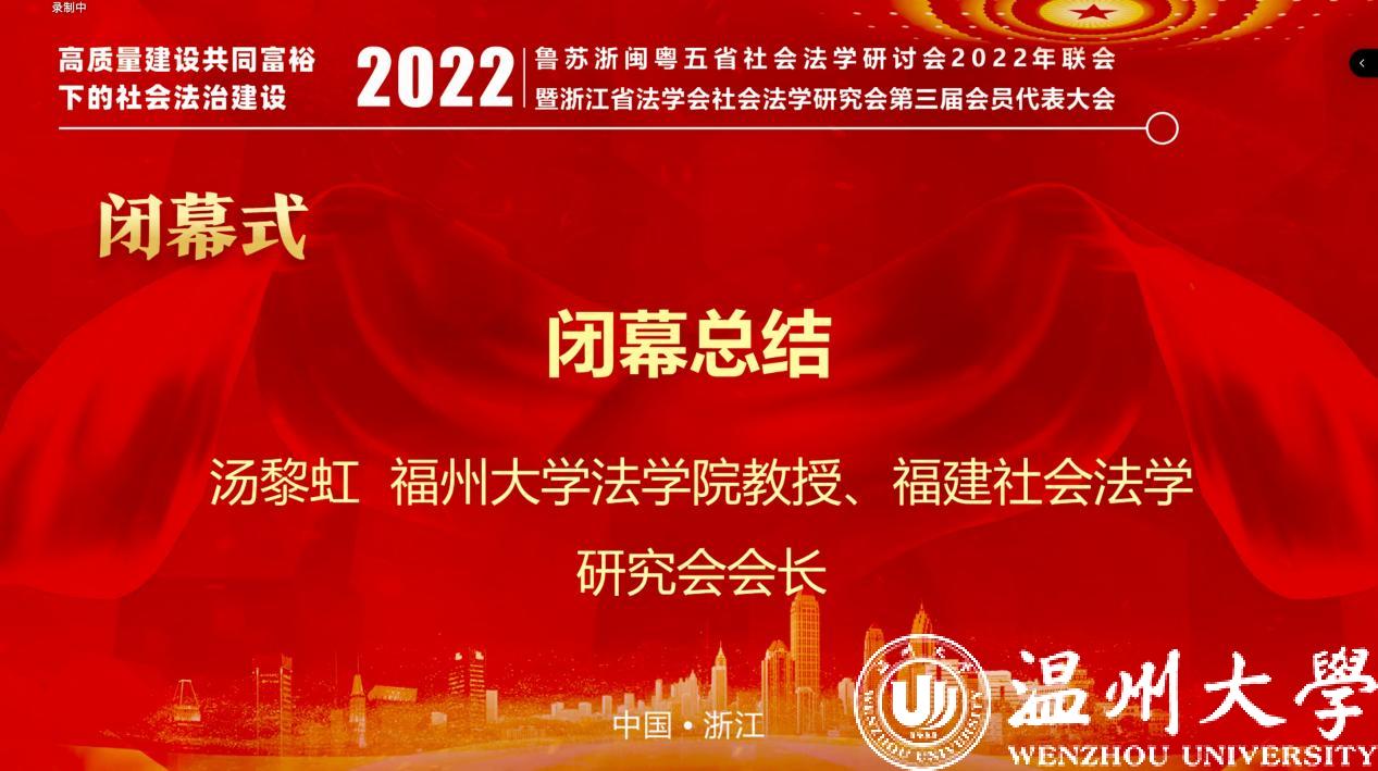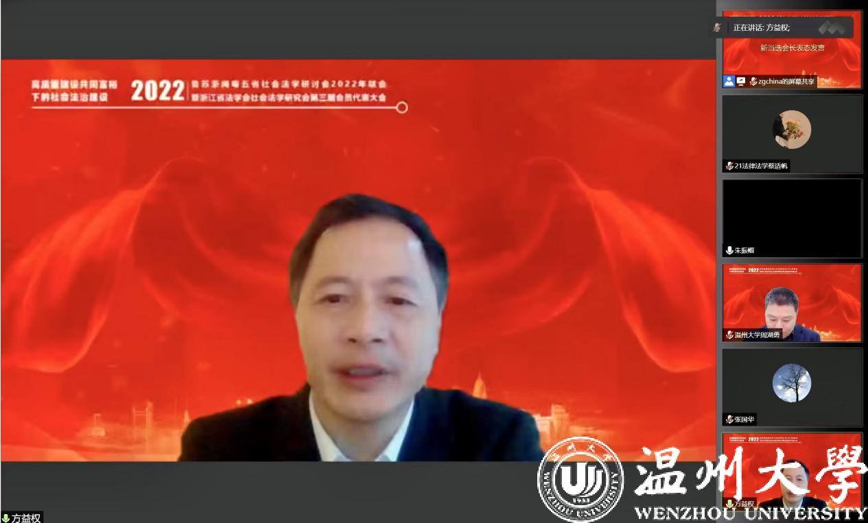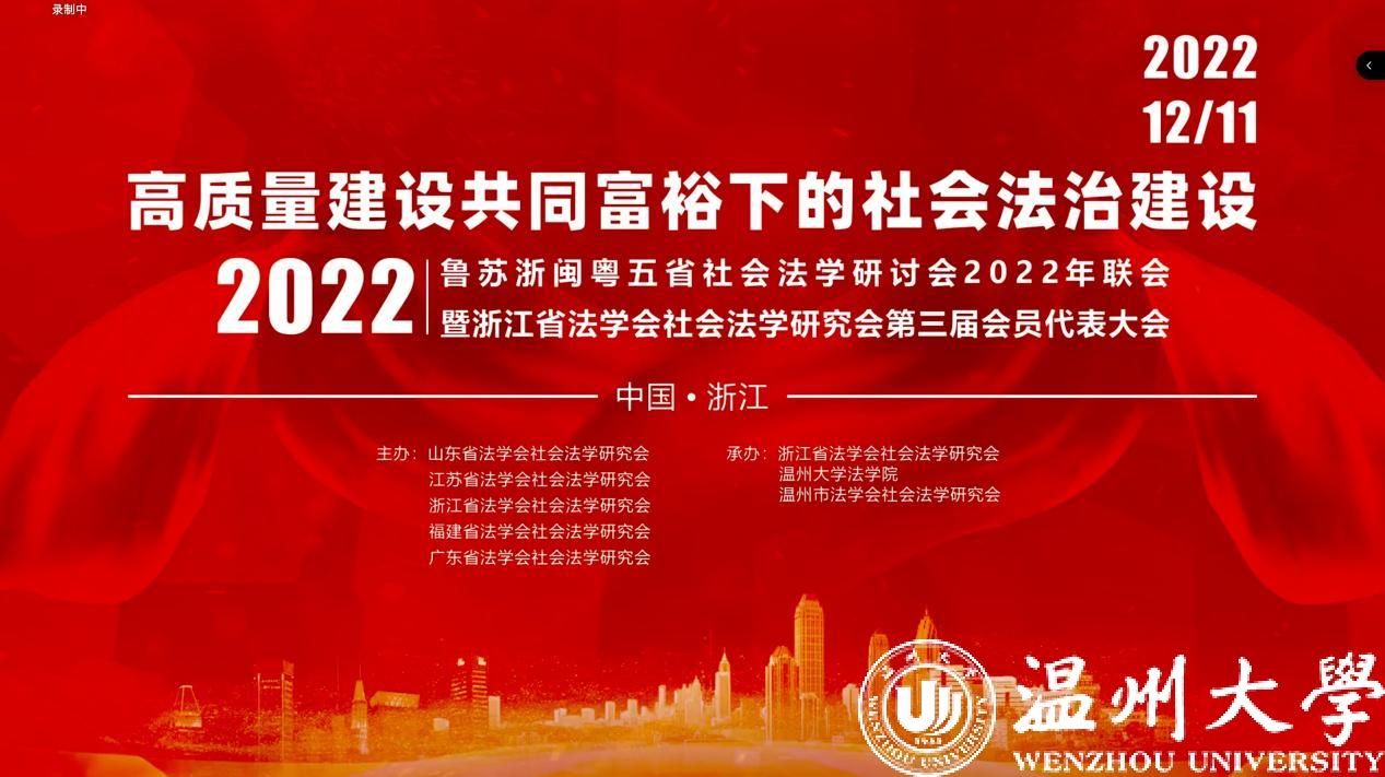 2022年12月11日,由山东、江苏、浙江、福建、广东五省法学会社会法学研究会主办,浙江省法学会社会法学研究会、温州市法学会社会法学研究会、yl永利集团官网登录承办的鲁苏浙闽粤五省社会法学研讨会2022年联会暨浙江省法学会社会法学研究会第三届会员代表大会成功举办。