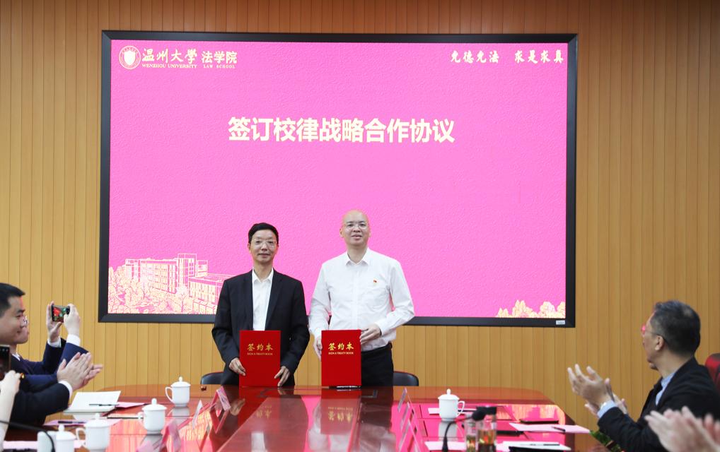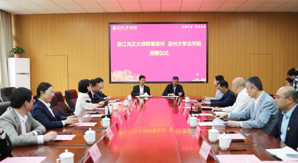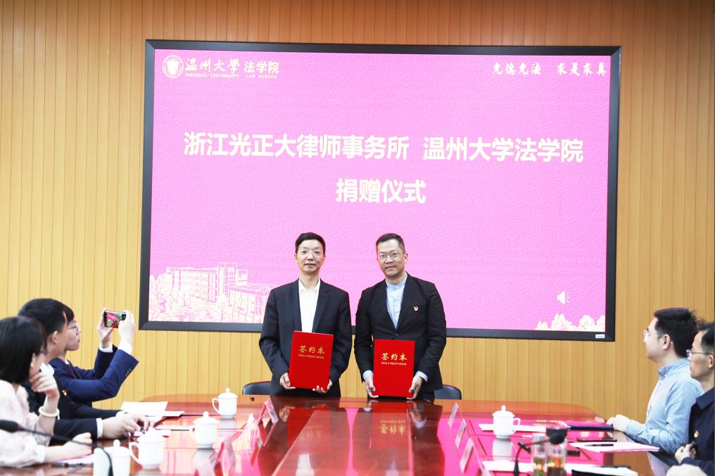 随后,举行签约仪式和捐赠仪式。浙江光正大律师事务所副主任陈兴良、yl永利集团官网登录经理王宗正分别代表浙江光正大律师事务所、yl永利集团官网登录签订校律战略合作协议。
