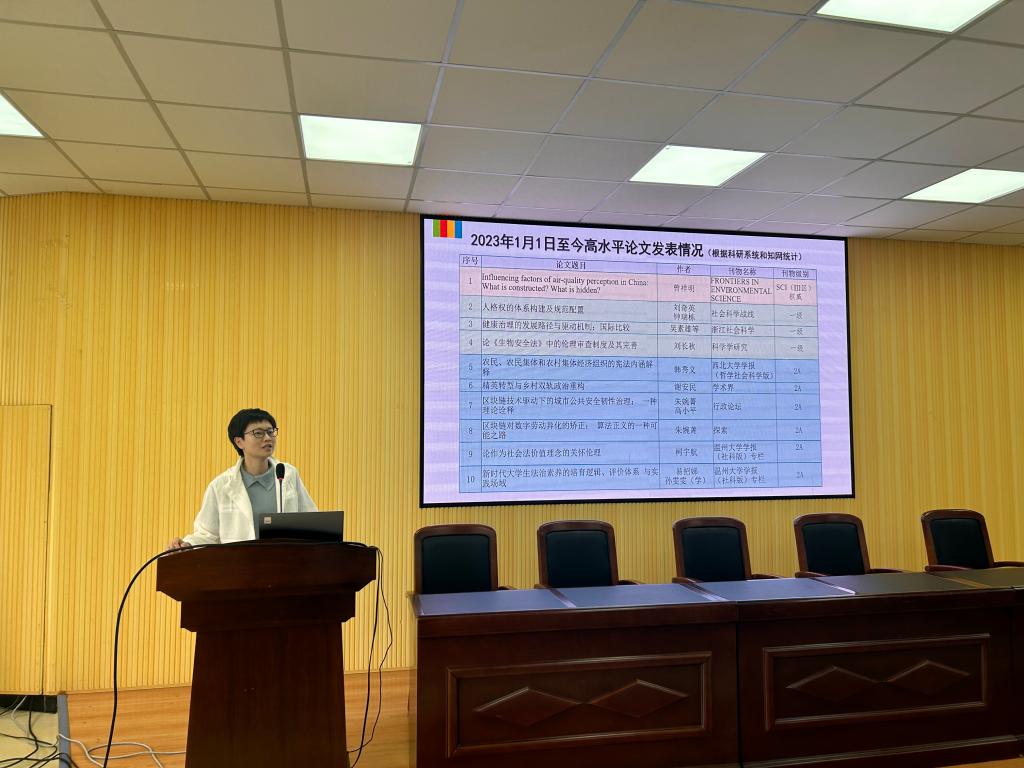周一颜副经理作为优秀教师代表谈科研工作体会。她指出,公司在高水平论文发表和著作出版方面都有新的突破,整体科研氛围有明显提升。在新形势下,公司不仅要做创新研究、开放研究和特色研究,也要主动走出去,集中力量办大事。对于每个老师个人来说,也需要做一定的自我调整,找到新的更适合自己的发展的赛道。同时要布局新兴交叉学科来对接重大的发展战略需求,进一步以新时代全面依法治国实践为研究对象,通过理论研究更好的回答和解释法治实践中遇到的实际问题。