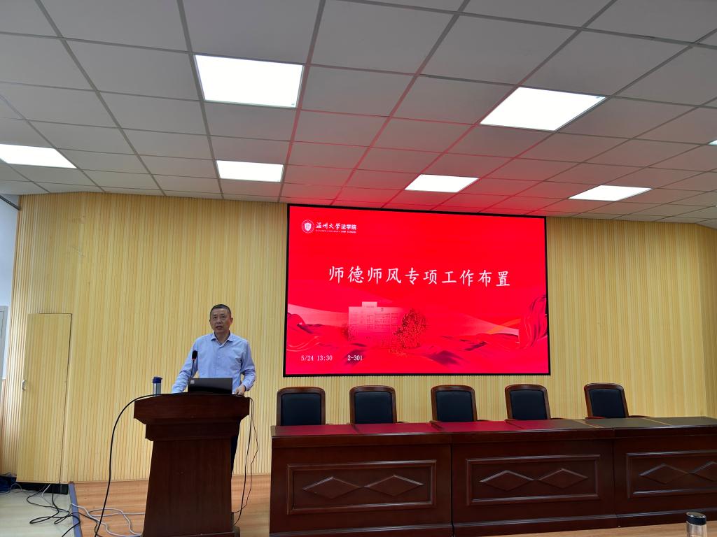 林钦书记布置师德师风专项工作。根据浙江省教育厅最新通知要求和公司师德师风专项工作安排,要求公司全体教师要开展一轮自学,开展一次自查,开展一次剖析,撰写一份工作小结,签订一份承诺书,同时要求各系室开展一次师德师风谈心谈话会,各支部开展一次师德师风专题党课培训,多形式开展教师师德主题教育。