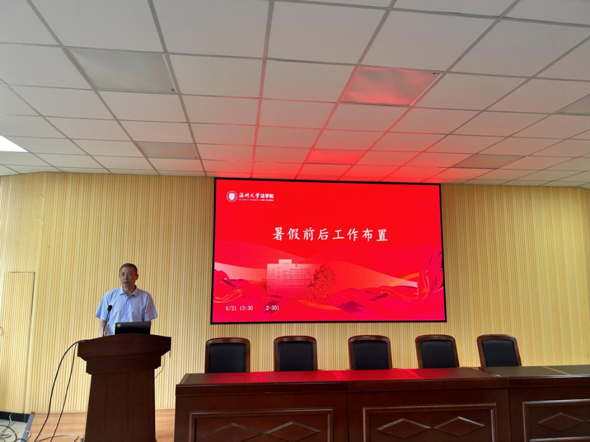 林钦书记做暑假前后工作布置。他对毕业生离校、教师监考阅卷、员工安全教育、暑期员工留校、实验室假期使用管理等学期末工作和暑期值班、暑期培训、本科招生宣传、就业指导等暑假期间工作,及新学期开学工作做了详细布置。