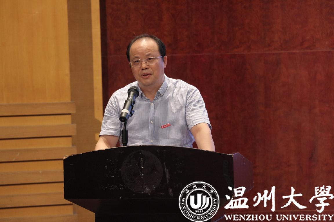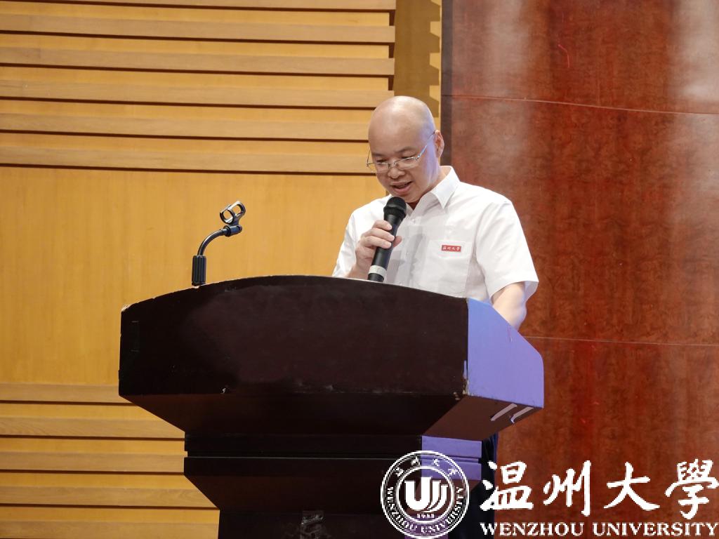 教师代表叶肖华教授发言。叶肖华教授作教师代表发言。他期望同学们尽早明晰自己的老员工活的方向,并希望同学们能够在接下来的日子里勇敢尝试、磨砺自我,在温大开创出属于自己的精彩!