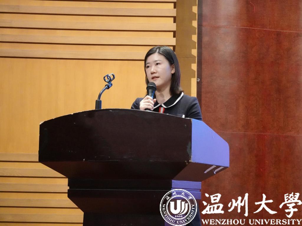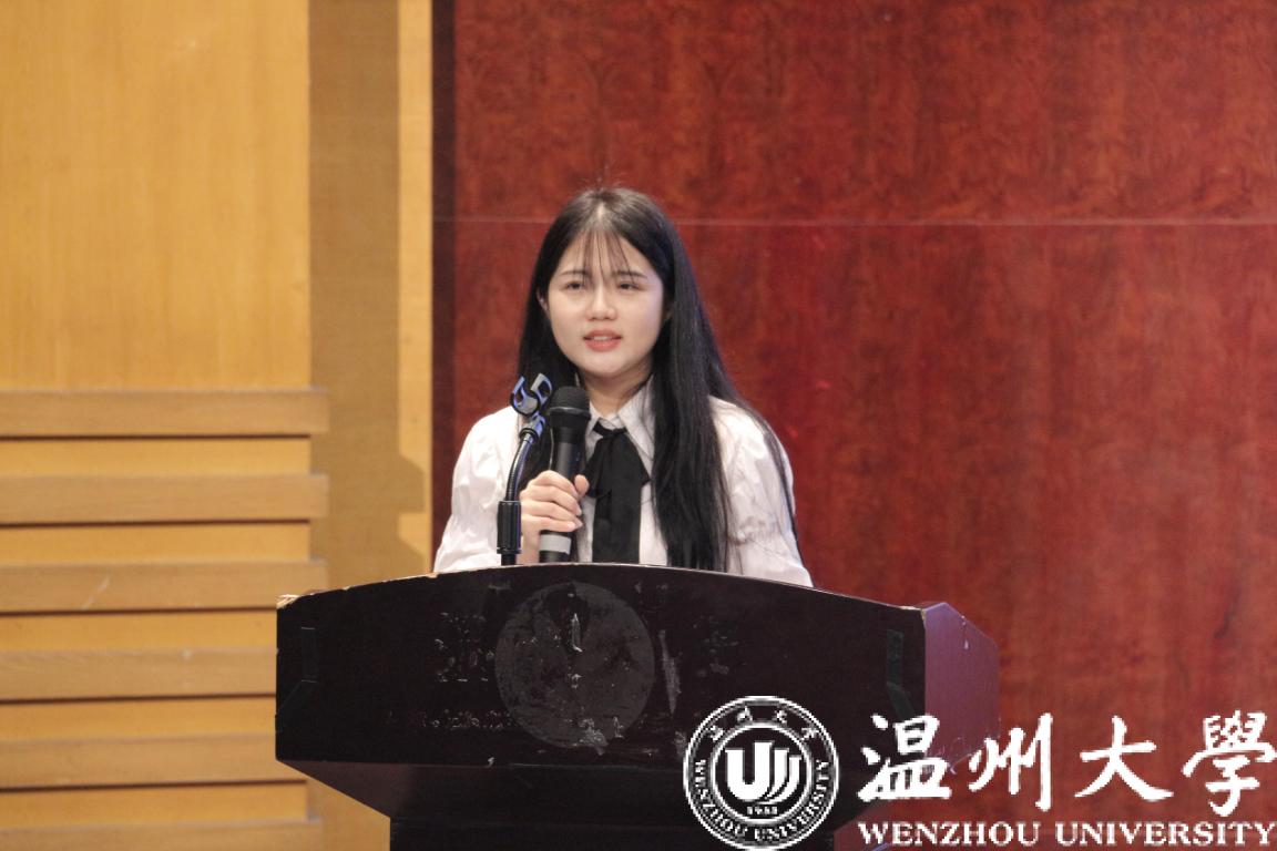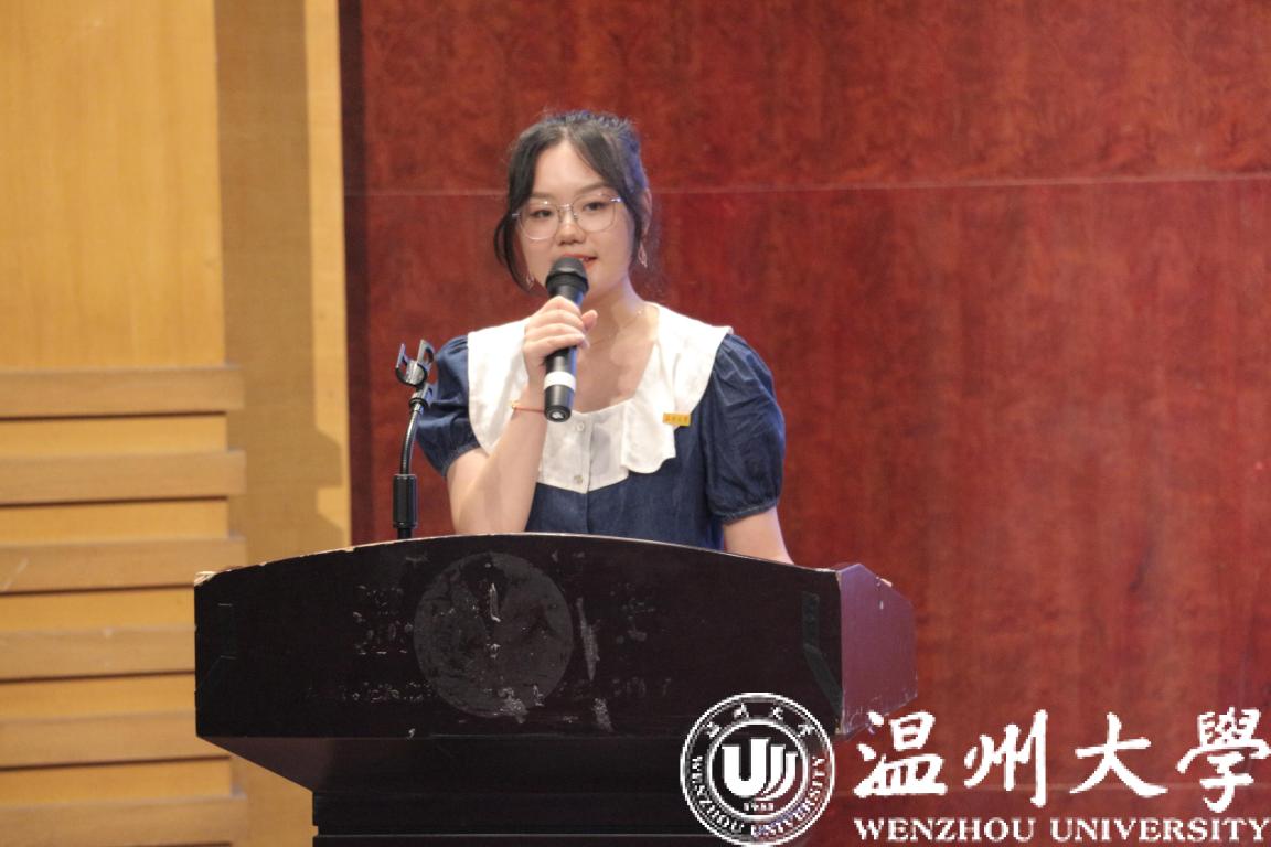 研究生新生代表杨钰莹同学发言。杨钰莹同学讲述了5年在温大yl永利集团官网登录的求学经历,提出了对自己未来漫漫求学路的期望,潜心磨砺、携手同行,共同谱写壮美的青春篇章。