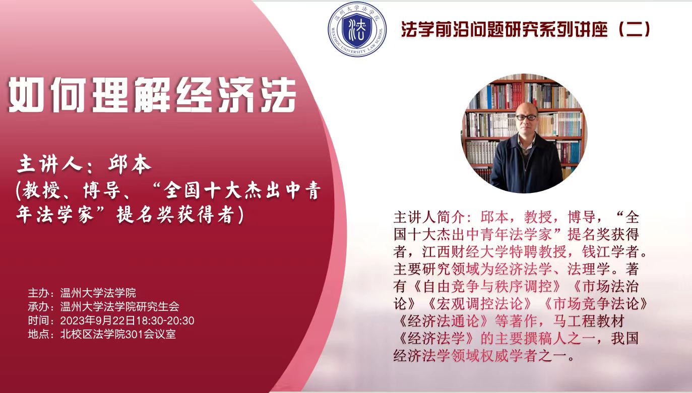 2023年9月22日晚,永利集团官网邱本教授在yl永利集团官网登录301会议室为公司师生带来题为《如何理解经济法》的讲座。