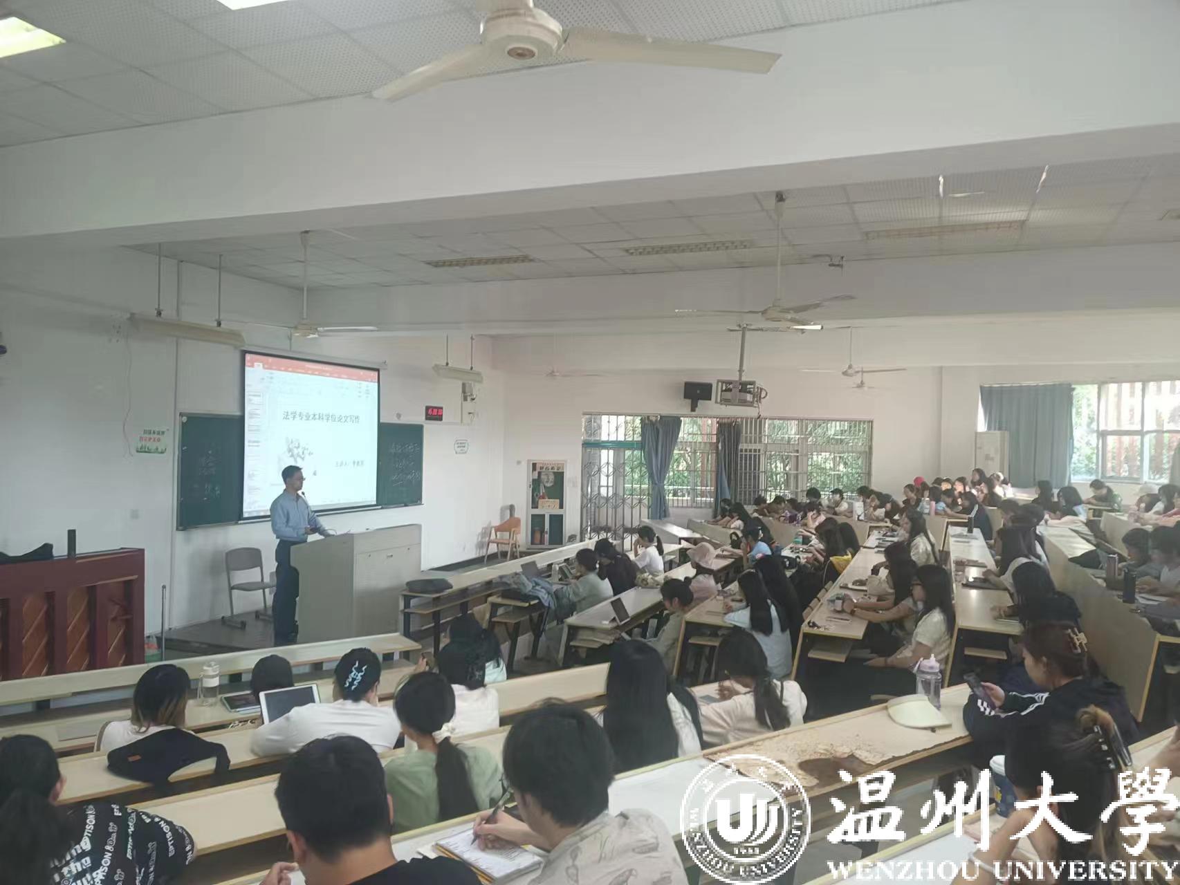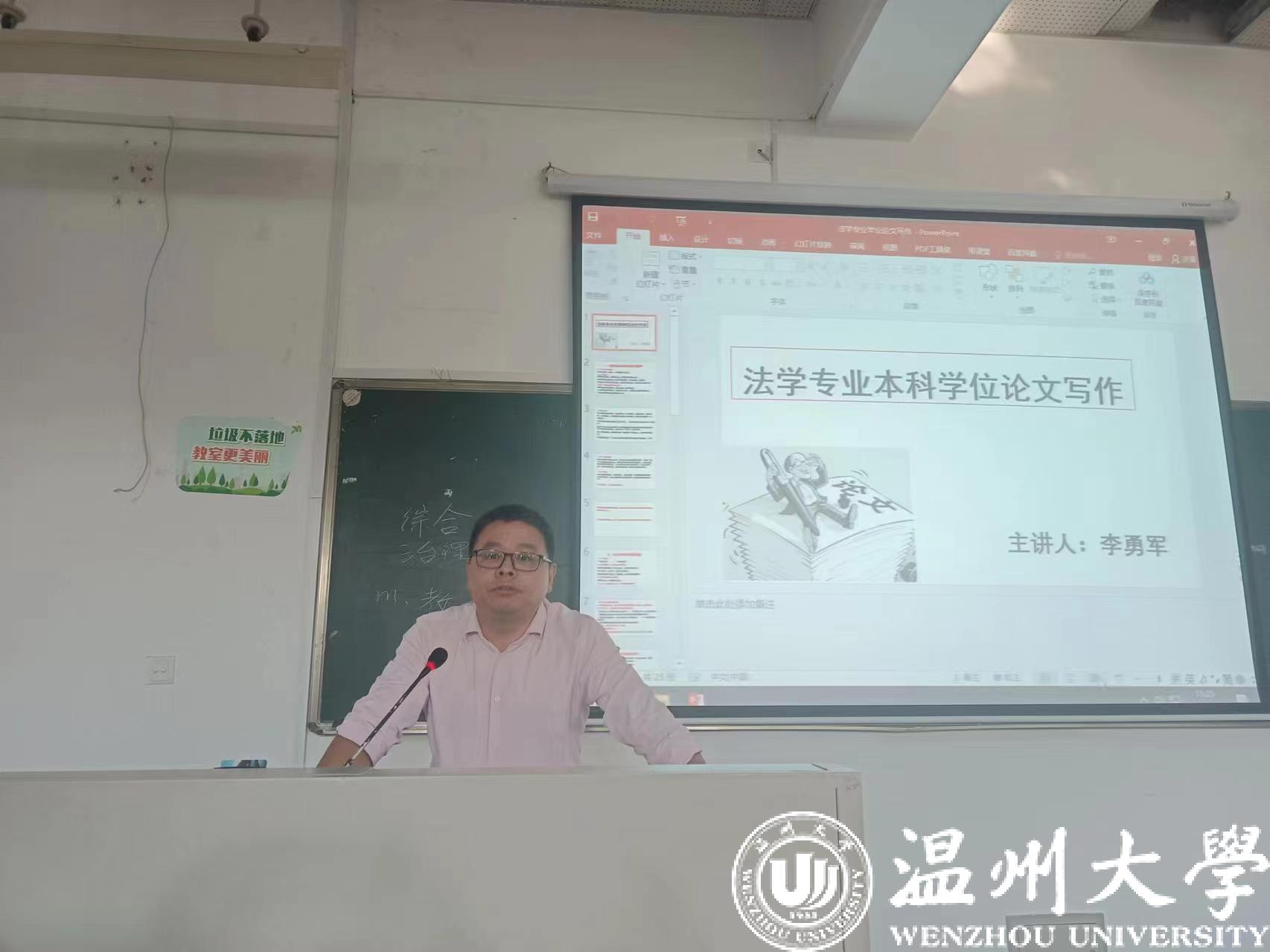 最后,李勇军老师以“法学专业本科学位论文写作”为题目向员工介绍如何撰写一篇本科毕业论文,包括论文选题、开题报告、正文撰写、格式规范等需要注意的要点,并向同学们展示了往届的优秀毕业论文。