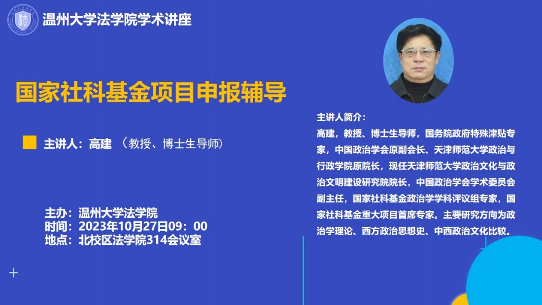 10月27日上午,天津师范大学政治与行政公司教授、博士生导师,国务院政府特殊津贴专家,中国政治学会原副会长、天津师范大学政治与行政公司原经理,天津师范大学政治文化与政治文明建设研究院经理、中国政治学会学术委员会副主任高建教授在yl永利集团官网登录314会议室为公司师生带来题为《国家社科基金项目申报辅导》的讲座。本次讲座由yl永利集团官网登录MPA学位点负责人付翠莲教授主持,yl永利集团官网登录部分教师和研究生到场聆听。