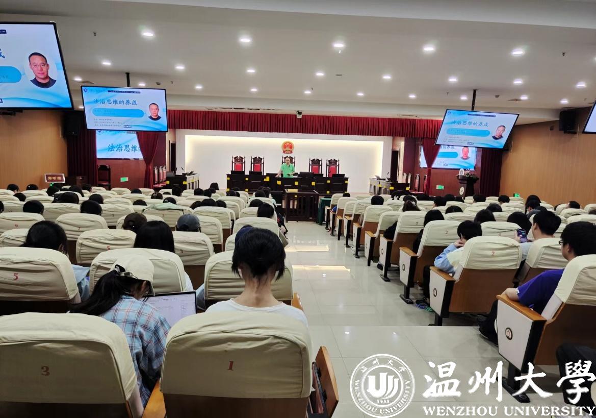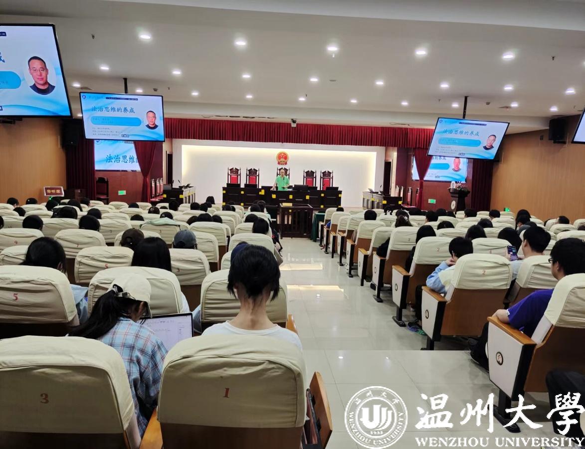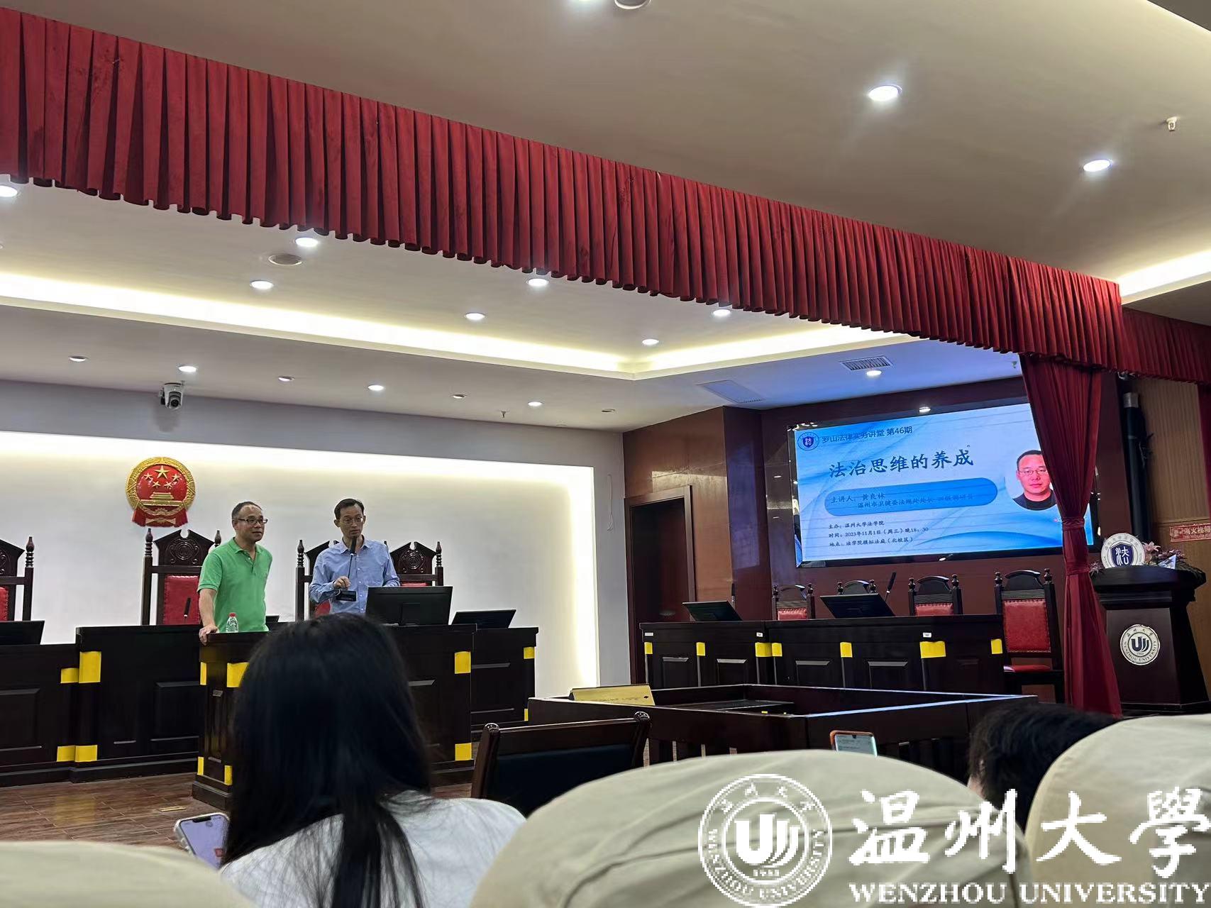 2023年11月1日晚,温州市卫健委法规处处长黄良林应邀作客“第46期罗山法律实务讲堂”,为yl永利集团官网登录师生带来题为《法治思维的养成》的讲座。讲座由法学专业负责人、民商经济法系主任李勇军副教授主持,yl永利集团官网登录师生200余人参加。