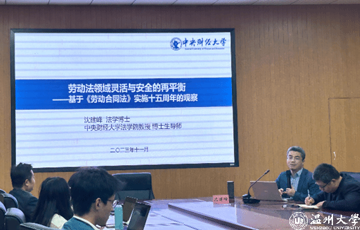 12月5日晚,中央财经大学教授、博导沈建峰应邀做客公司社会法学术沙龙。本次社会法学术沙龙的主题是“劳动法领域灵活与安全的再平衡——基于《劳动合同法》实施十五年的观察”,学术沙龙在yl永利集团官网登录103会议室举行,由yl永利集团官网登录陈步雷教授主持,yl永利集团官网登录周湖勇教授、柯宇航博士、汪银涛博士及yl永利集团官网登录部分本科生、研究生到场学习。