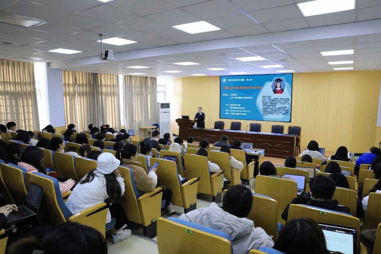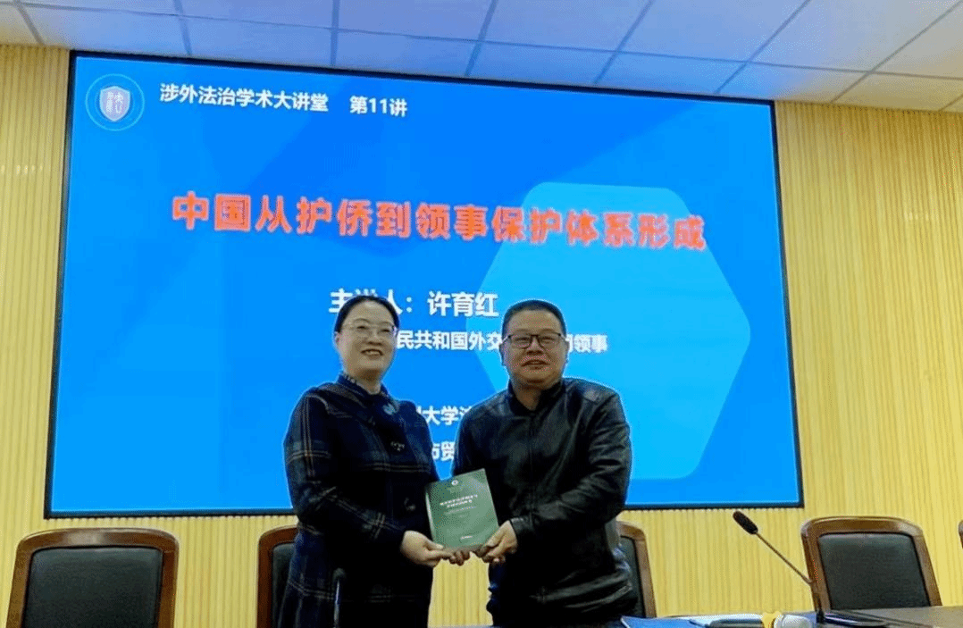12月22日下午,外交部领事司领事许育红博士莅临yl永利集团官网登录,在301会议室为师生作了题为《中国从护侨到领事保护体系形成》的讲座,包括国际经贸规则专业在内的yl永利集团官网登录100多位师生参加。yl永利集团官网登录周湖勇副经理主持讲座,热烈欢迎许领事的到来,并代表yl永利集团官网登录接受许领事的赠书。