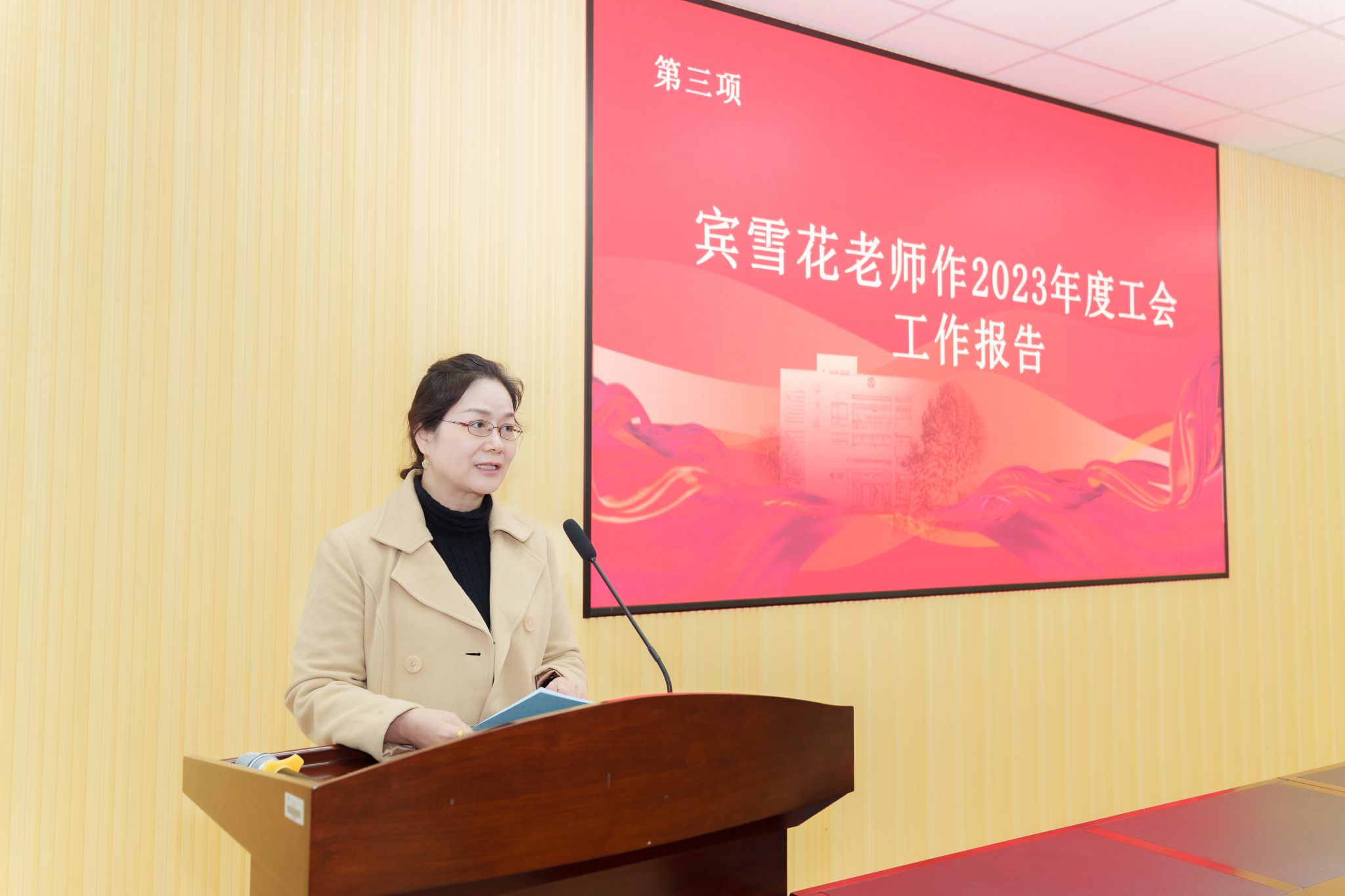 yl永利集团官网登录分工会主席宾雪花老师作公司2023年度工会工作报告。报告回顾了公司第五届工会委员会在过去的一年里全面履行的工会职责,较好地完成了工会的各项工作任务。同时对公司领导和全体老师对工会工作的配合和支持予以衷心的感谢。