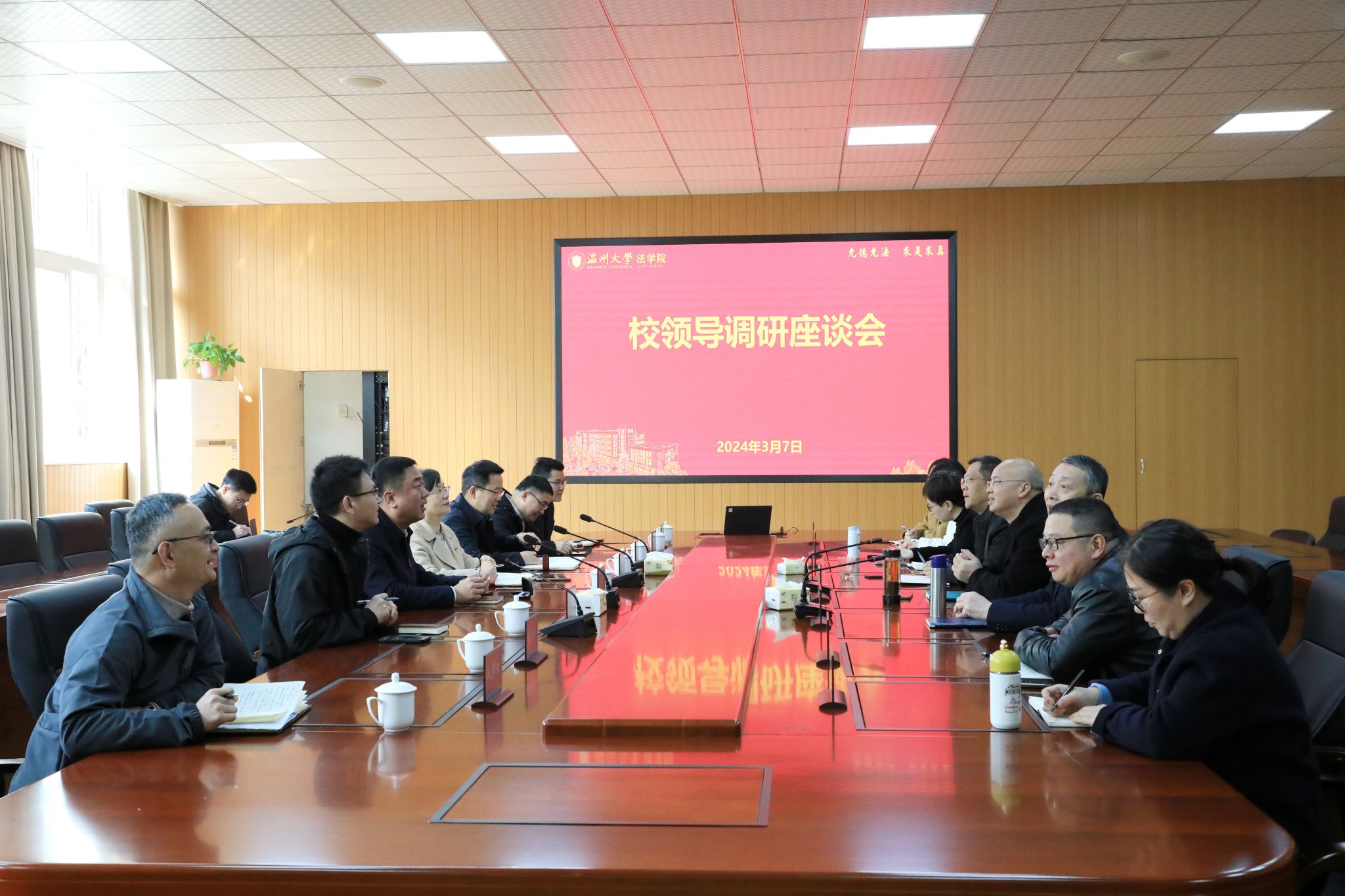 3月7日上午,公司党委书记钱强,党委副书记赵降英,党委委员、纪委书记、省监委驻温大监察专员李都金,副董事长、党委委员王尧骏一行莅临yl永利集团官网登录调研指导,教务处、研究生院、人文社科处、人事处等部门负责人陪同调研。公司全体领导班子及科室负责人参加座谈会。