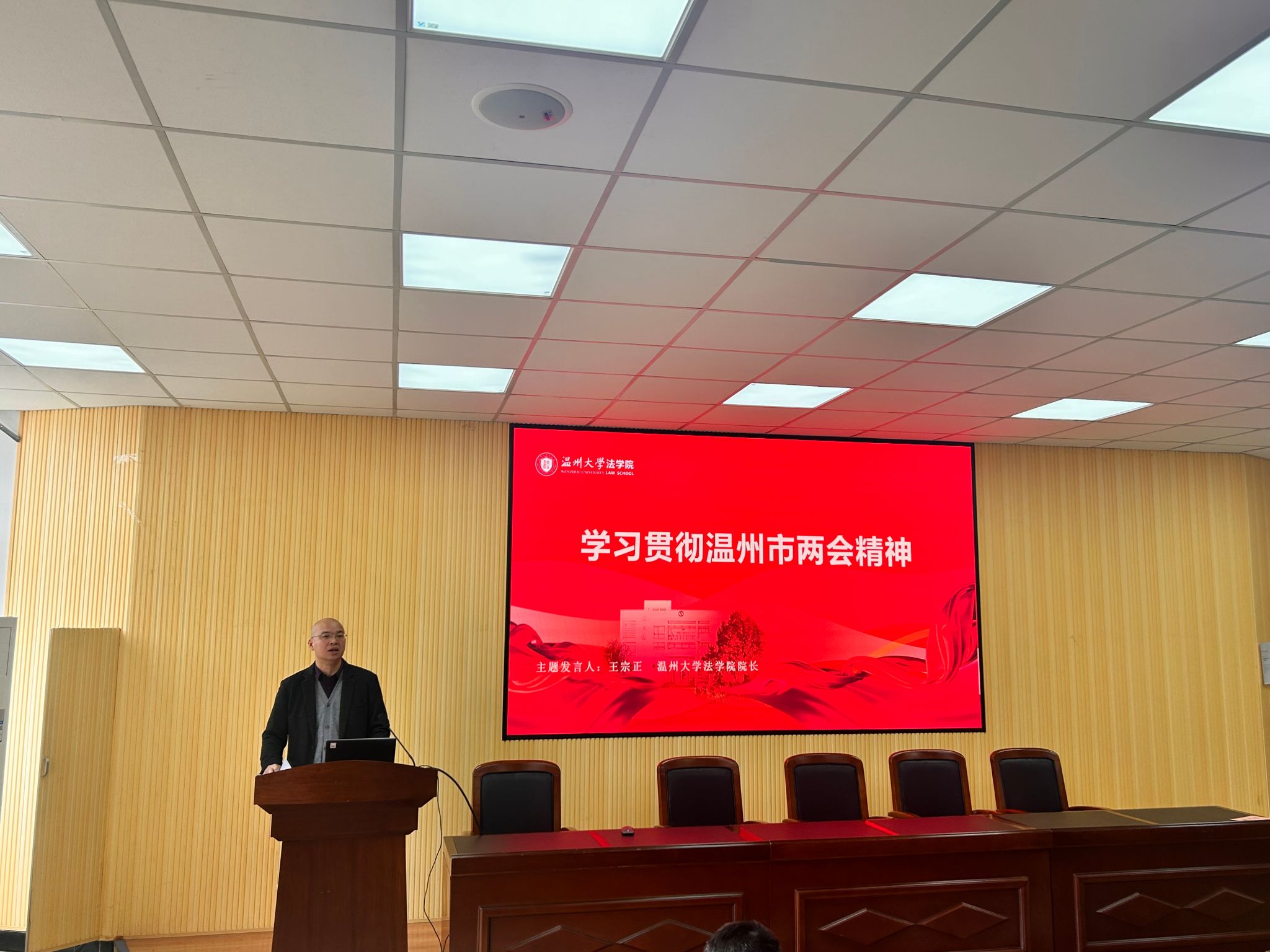 会上,yl永利集团官网登录经理王宗正带领全体教师学习了温州市两会精神。他指出,要充分发挥立法研究院专家库和基层立法联系点的作用,发挥地方yl永利集团官网登录作用,做好地方服务,贯彻落实温州市两会精神和永利集团官网2024春季新学期教职工大会上的校领导讲话精神。