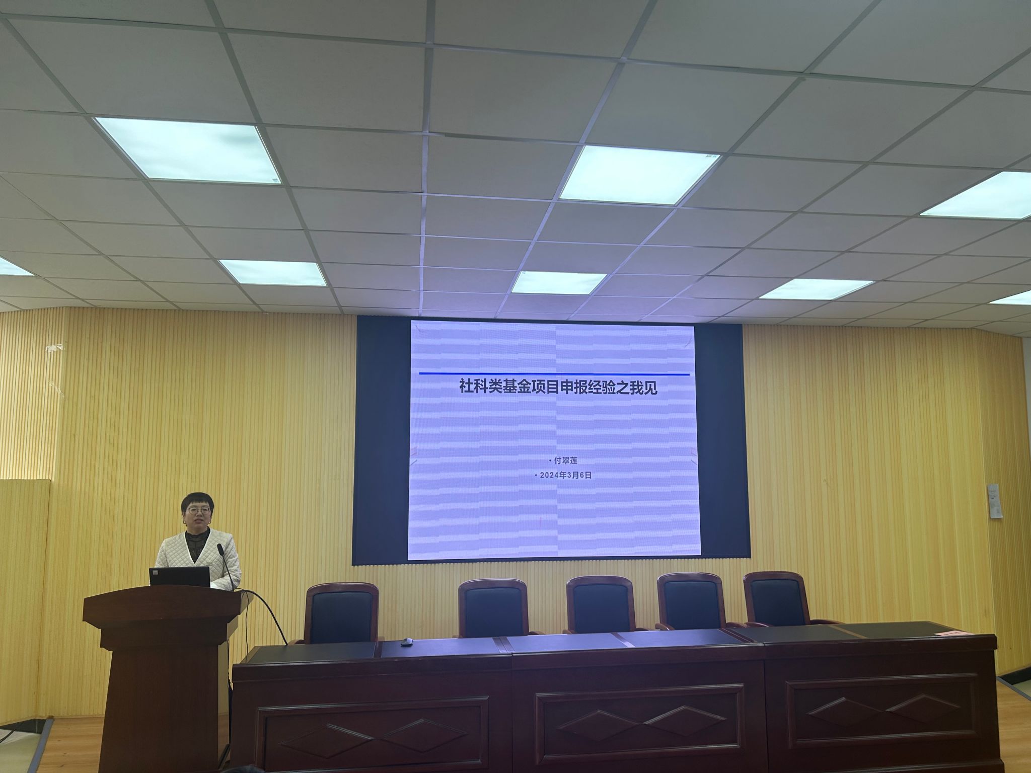 付翠莲教授做国家社科基金项目申报经验分享。她从选题的基本理念、掌握基金项目评审步骤、申报书论证技巧三个方面进行分析,鼓励公司教师要相信自己,精益求精。