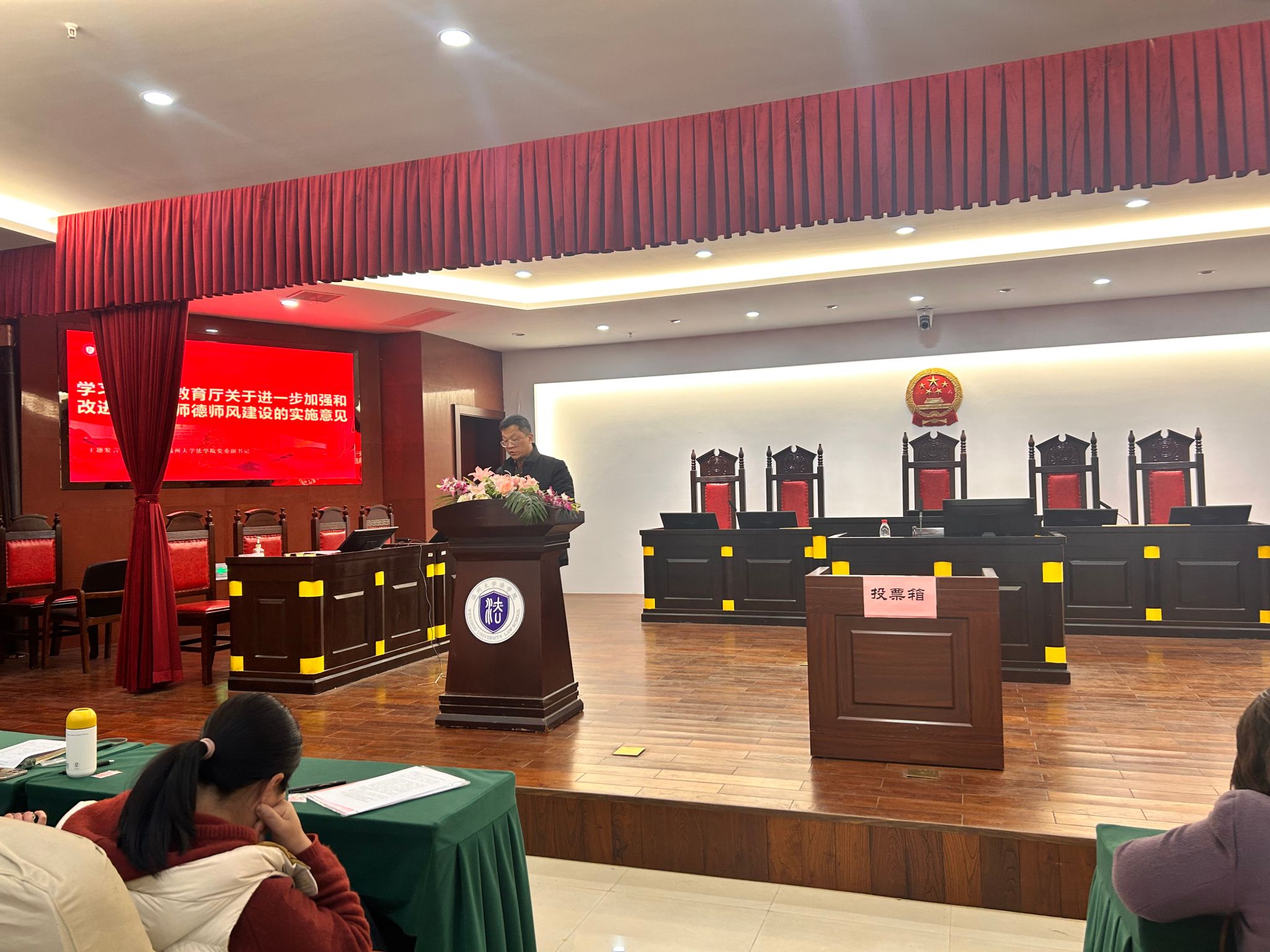 2024年3月20日,yl永利集团官网登录在北校区8号楼模拟法庭召开公司教师政治理论学习会,会议由公司党委书记林钦主持,全体教职工参加会议。