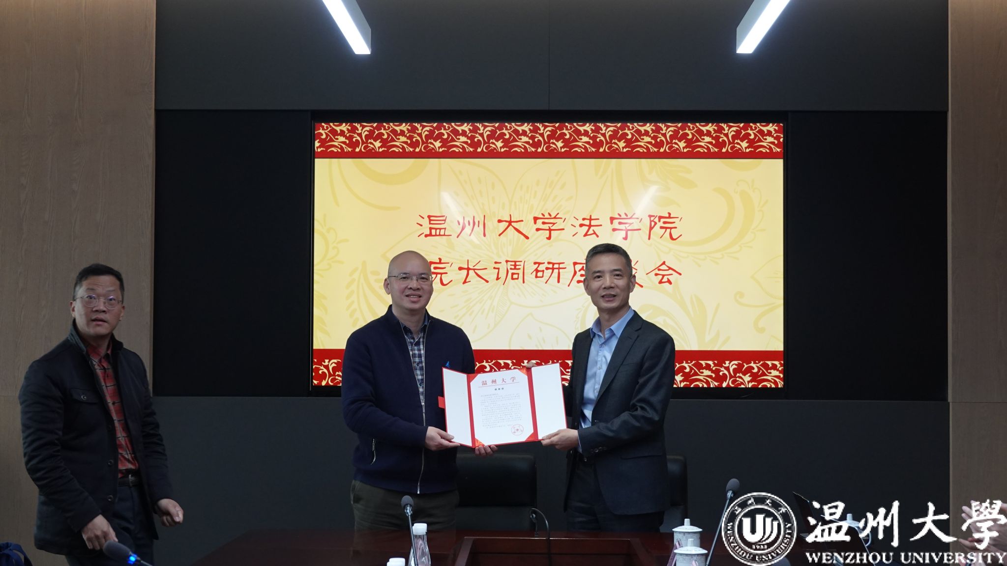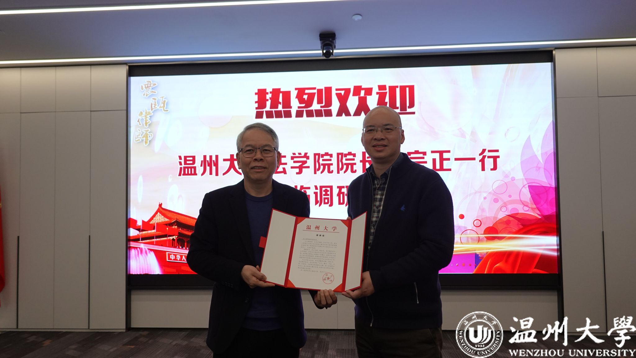 在浙江嘉瑞成律师事务所,王宗正经理一行受到热烈欢迎,主任方良、副主任吴孙有带领参观律所。