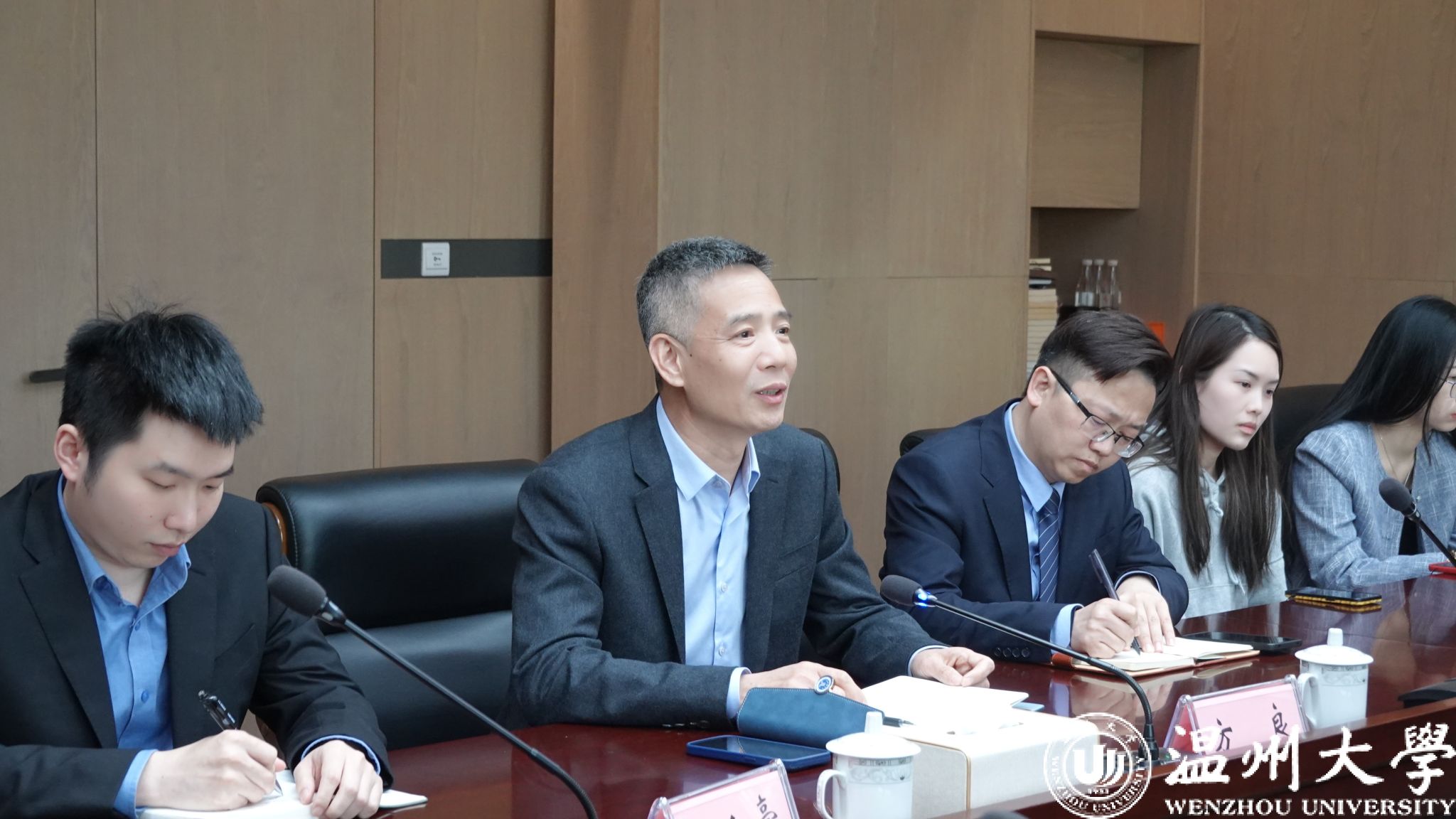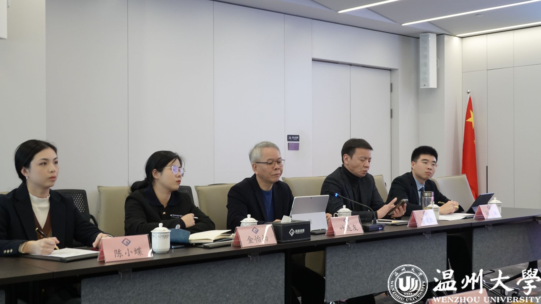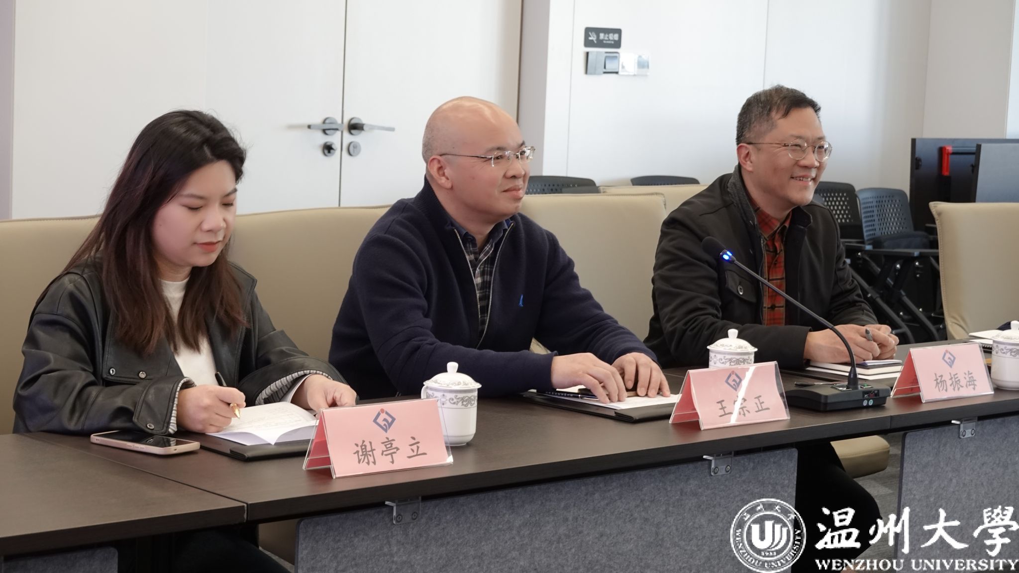 在浙江震瓯律师事务所,王宗正经理一行在主任叶连友的带领下先后参观了人员亮相牌、历史发展长廊、调解室、接待区、大会议室、露台花园等场所,深入了解律所从成立到引领温州律所潮头的发展历程。