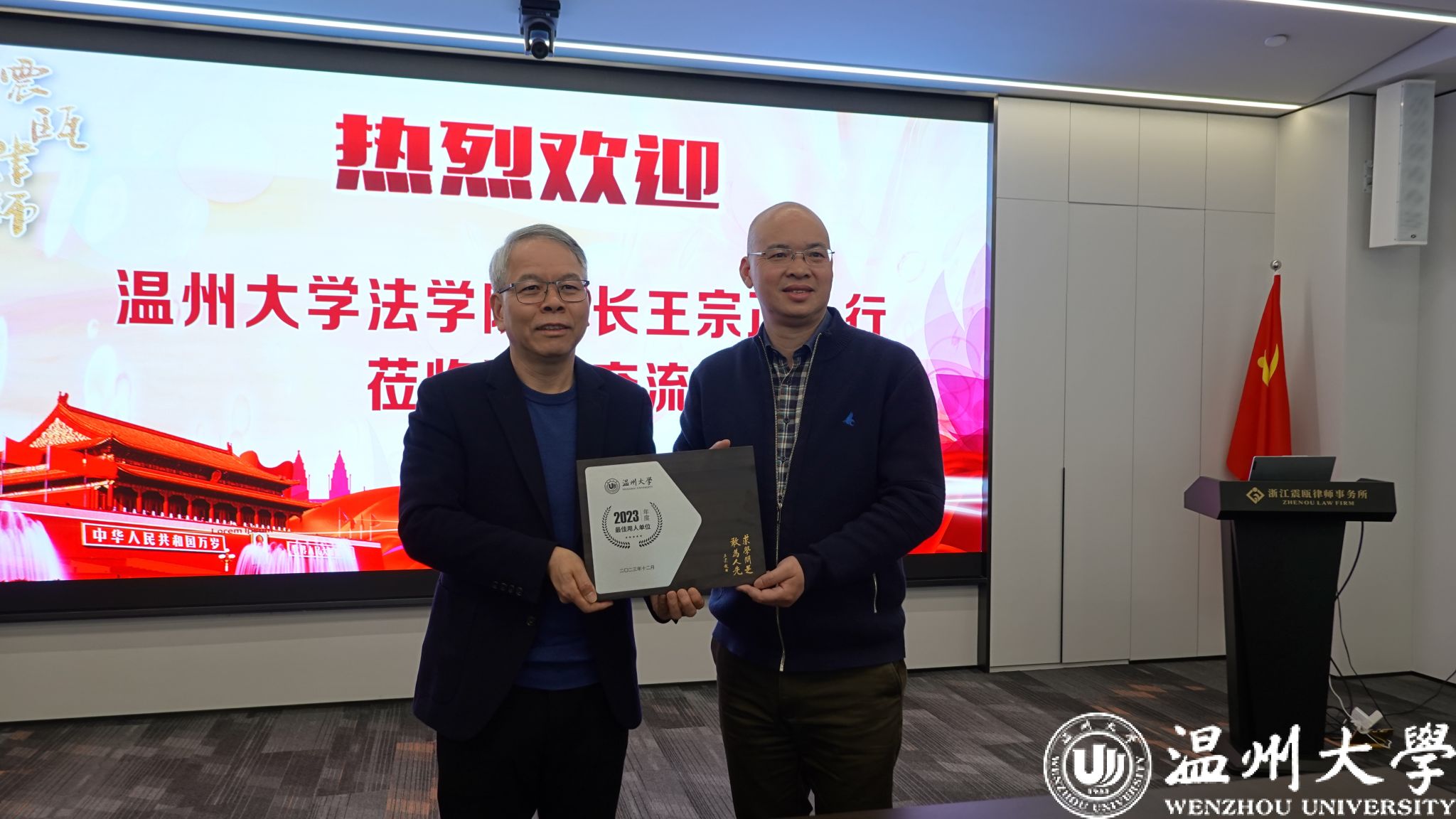 会后,王宗正经理为律所颁发“永利集团官网2023年度最佳用人单位”纪念证书、《感谢信》和精美纪念品一份。