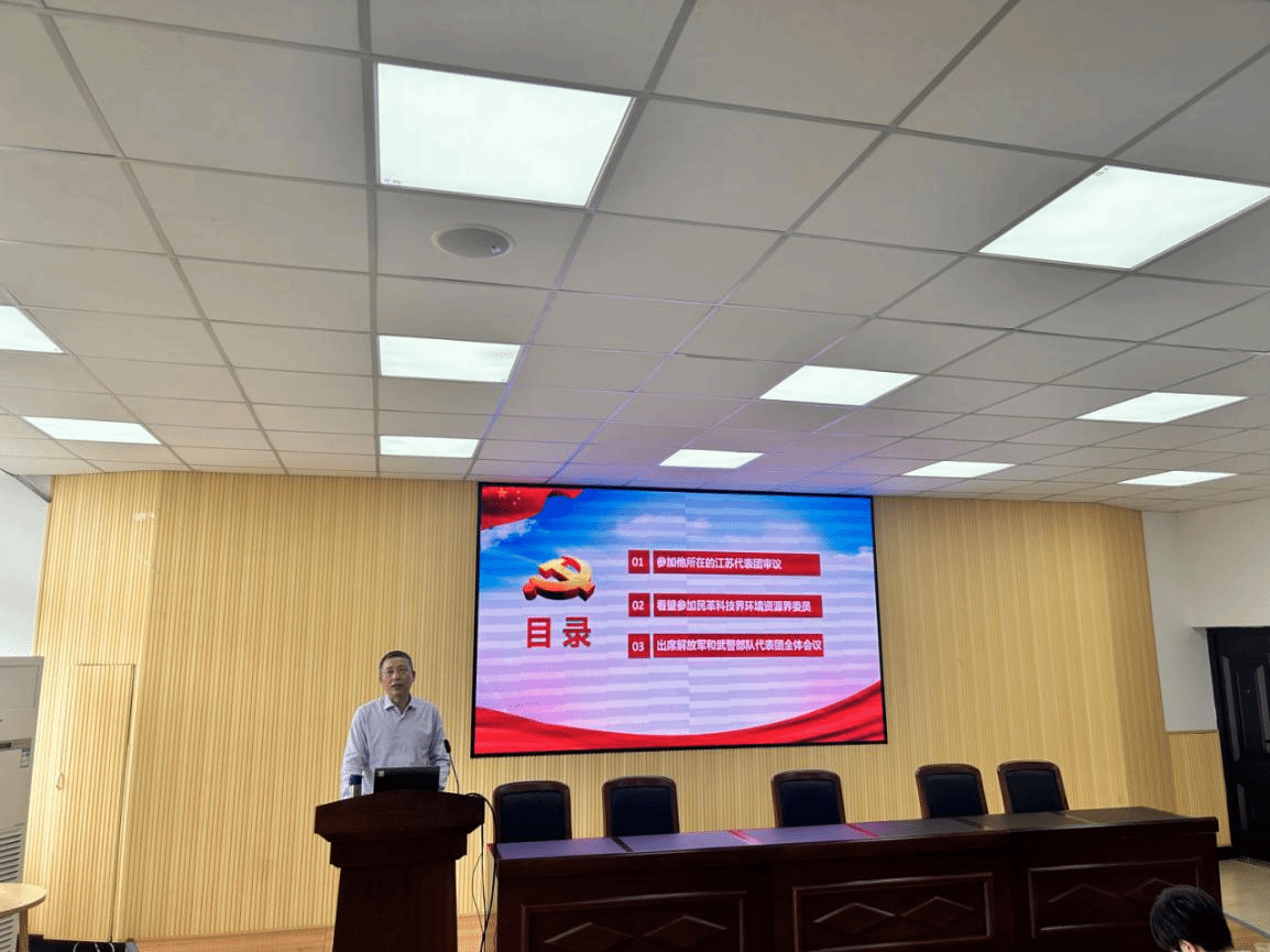 最后,林钦书记带领全体教师共同学习习近平总书记在全国两会中的讲话精神。他从习近平总书记参加他所在的江苏代表团审议、看望参加民革科技界环境资源界委员、出席解放军和武警部队代表团全体会议三个方面讲述了习近平总书记就因地制宜发展新质生产力、全面提升新兴领域战略能力、团结凝聚各方面力量扎实稳健推进中国式现代化等作出的一系列重要指示,为推动高质量发展、推进中国式现代化注入了强大的思想和行动力量。