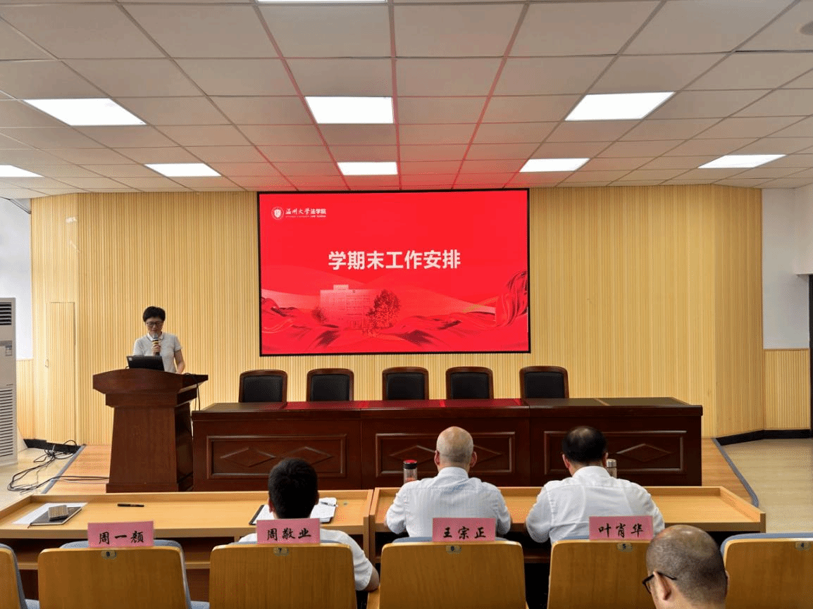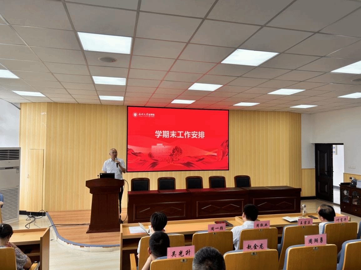 周一颜副经理做学期末教学工作安排。提醒老师注意期末监考纪律,规范批改试卷,并在规定时间内完成成绩录入。同时提醒老师着手准备完善教学大纲,继续做好教学等工作。