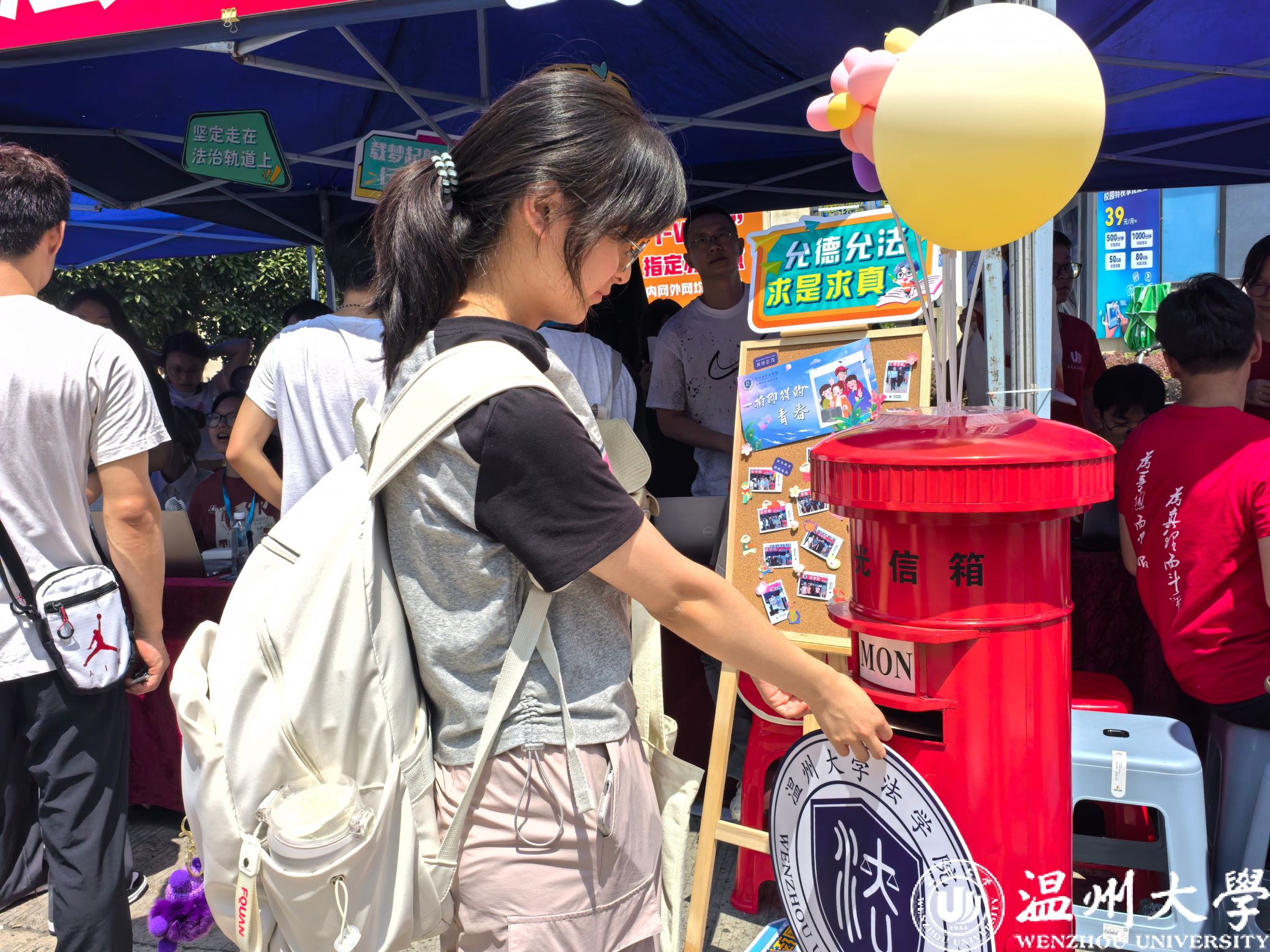 公司为新生准备定制波波球,鼓励新生在气球上写下对未来的期待和祝福,给新学期、新生活“打打气”。
