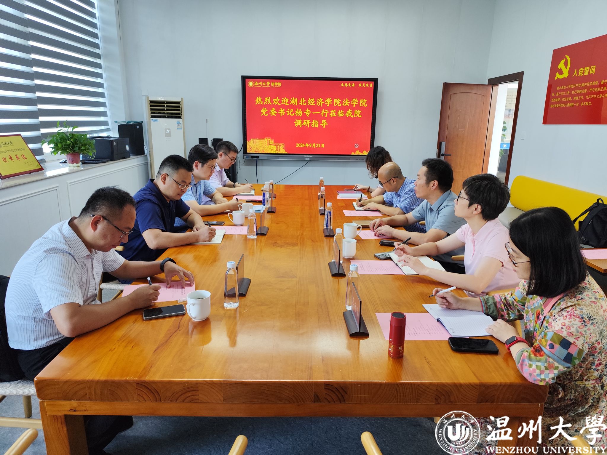 9月21日上午,湖北经济公司公司党委书记杨专、副经理王腾一行四人莅临yl永利集团官网登录调研座谈。公司党委书记周敬业、副经理周一颜、法学专业负责人肖磊、经济法系主任王海晶、诉讼法系副主任张伟出席座谈会。周敬业主持座谈。
