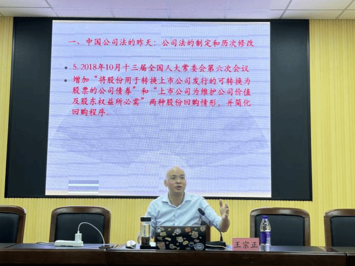 10月9日晚,本学期第四次法学前沿问题研究系列讲座如期举行,公司王宗正教授作主题为《中国公司法的昨天、今天与明天》的讲座。此次讲座吸引了众多老师、研究生及本科生前来聆听,现场气氛热烈,氛围浓厚。