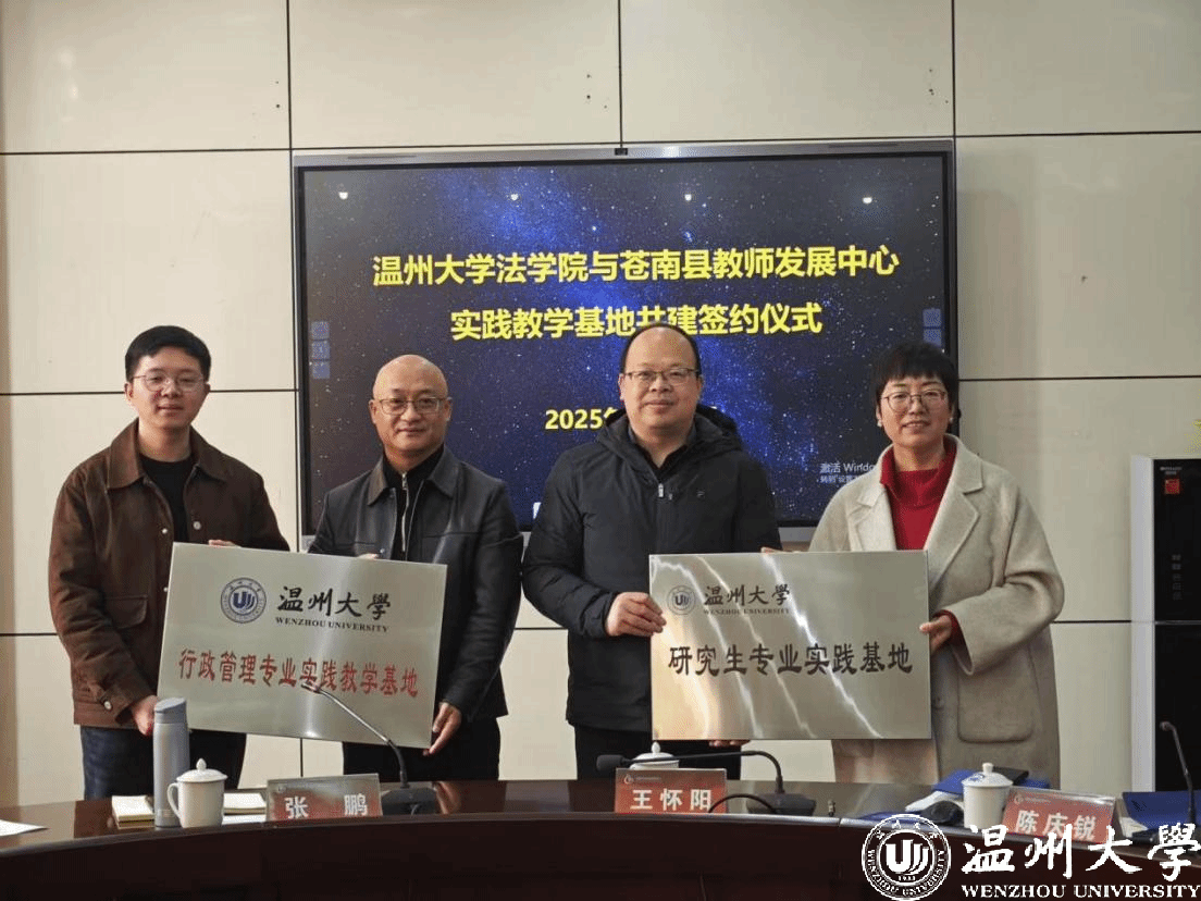 为深化校地合作,赋能基层治理创新,3月11日,yl永利集团官网登录学术副经理张鹏老师、公共管理学科负责人付翠莲老师、yl永利集团官网登录组织员白炳贵老师一行赴苍南县教育局、教师发展中心考察交流,苍南县教育局党委委员王怀阳、教师发展中心主任陈庆锐、苍南县教育局办公室副主任施依萍等出席活动。双方共同签署合作协议,并举行共建MPA研究生、行政管理专业本科生实践教学基地授牌仪式。