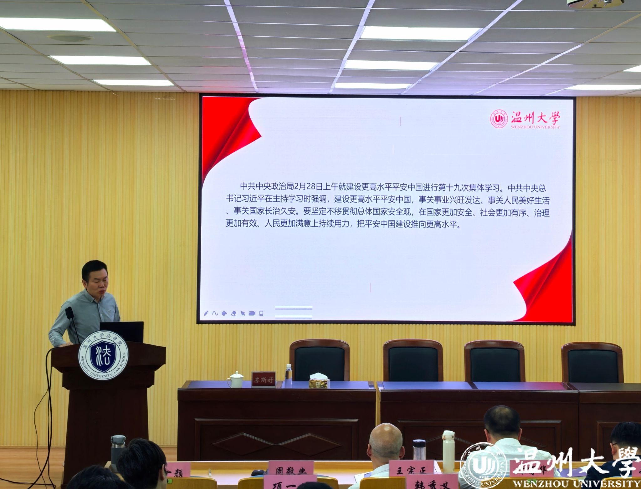 会上,周敬业书记带领大家学习《习近平总书记在中共中央政治局第十九次集体学习的重要讲话》。《讲话》指出,建设更高水平平安中国,事关事业兴旺发达、事关人民美好生活、事关国家长治久安。要坚定不移贯彻总体国家安全观,在国家更加安全、社会更加有序、治理更加有效、人民更加满意上持续用力,把平安中国建设推向更高水平。周书记要求全体教职工要深刻领会讲话精神的内涵和实质,将其贯彻到日常的公司产品和管理工作中。