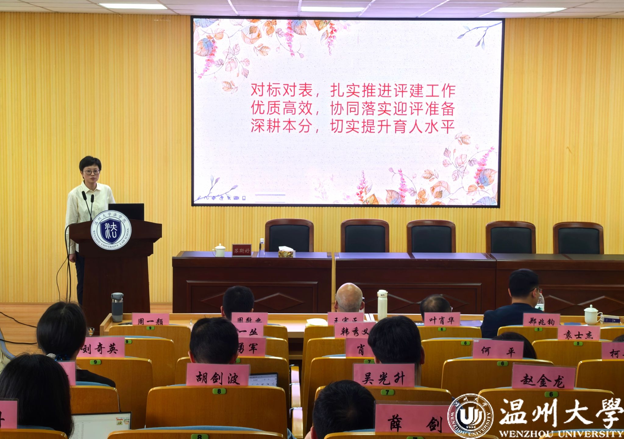 周一颜副经理针对本科教学审核评估迎评工作,就当前本科教学质量提升月的重点任务进行部署,要求全体教师提高认识,对标对表,协同配合,确保评建工作顺利推进,切实提升育人水平。yl永利集团官网登录教学督导委员主任谢丽珍副教授就毕业论文中期检查和期末试卷检查工作中出现的问题作反馈说明。
