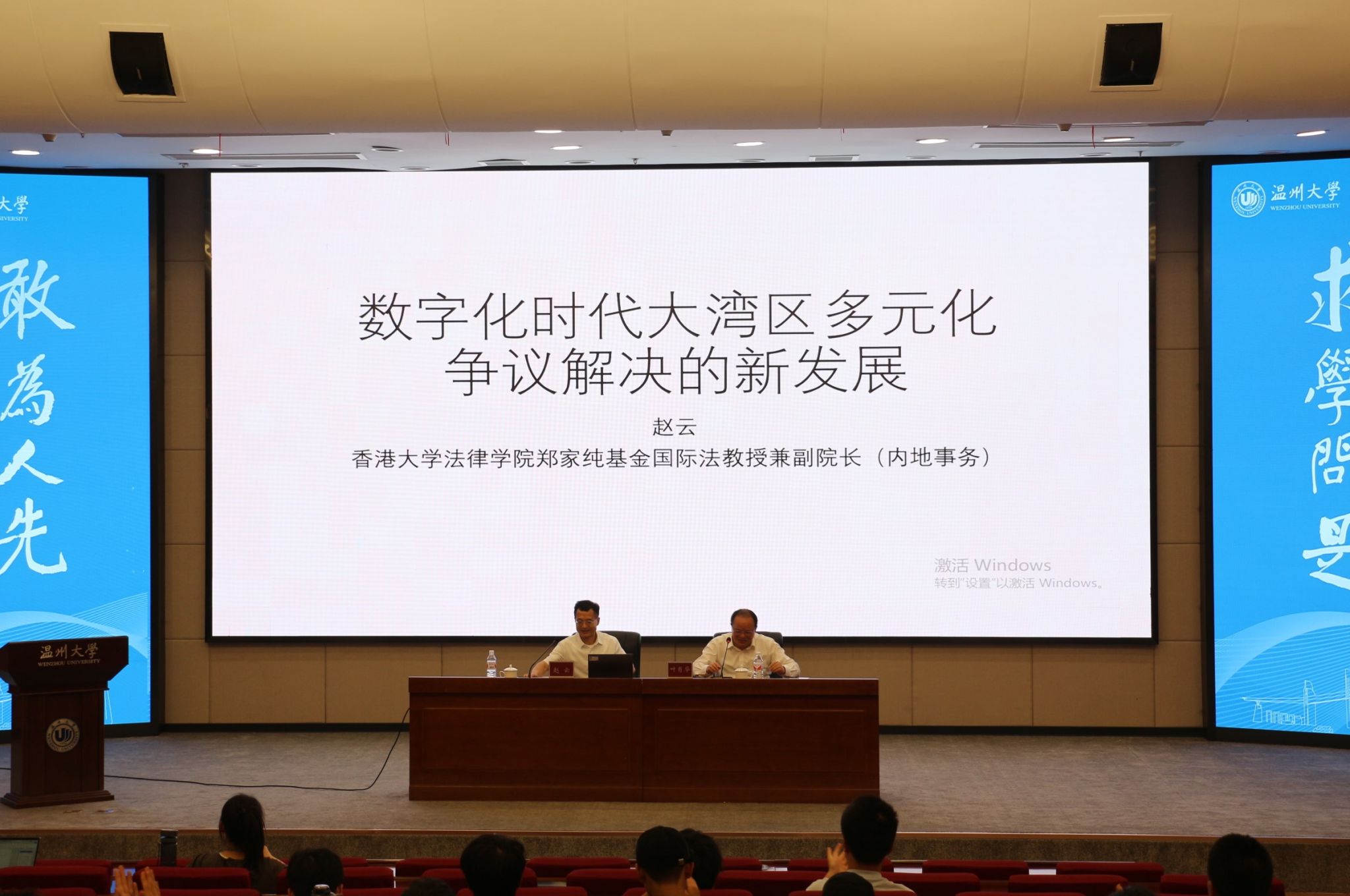 5月7日下午,由yl永利集团官网登录主办的学术讲座《数字化时代大湾区多元化争议解决的新发展》在育英图书馆二楼报告厅热烈开讲。本次讲座特邀香港大学法律公司郑家纯基金国际法教授兼副经理(内地事务)赵云主讲,yl永利集团官网登录副经理叶肖华教授主持并致欢迎词,吸引了公司100余位师生前来参加。