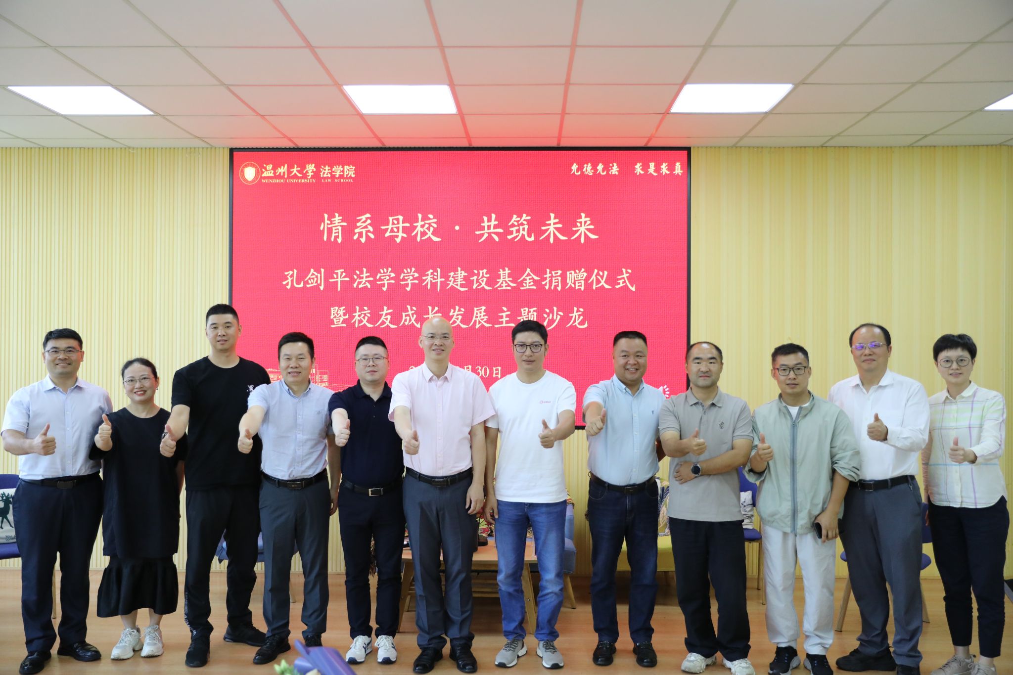 5月30日,yl永利集团官网登录“孔剑平法学团队建设基金”捐赠仪式暨员工成长发展主题沙龙于301报告厅举行。2004级法学专业员工、浙江毫微科技有限公司董事长、香港数码港董事孔剑平博士为母校捐赠100万元,成立孔剑平法学团队建设基金,助力公司高质量发展。2004级法学专业员工林晓国、陈英堂、庄益探、杨利坤、周耀,公司领导班子全体成员、师生代表出席活动。