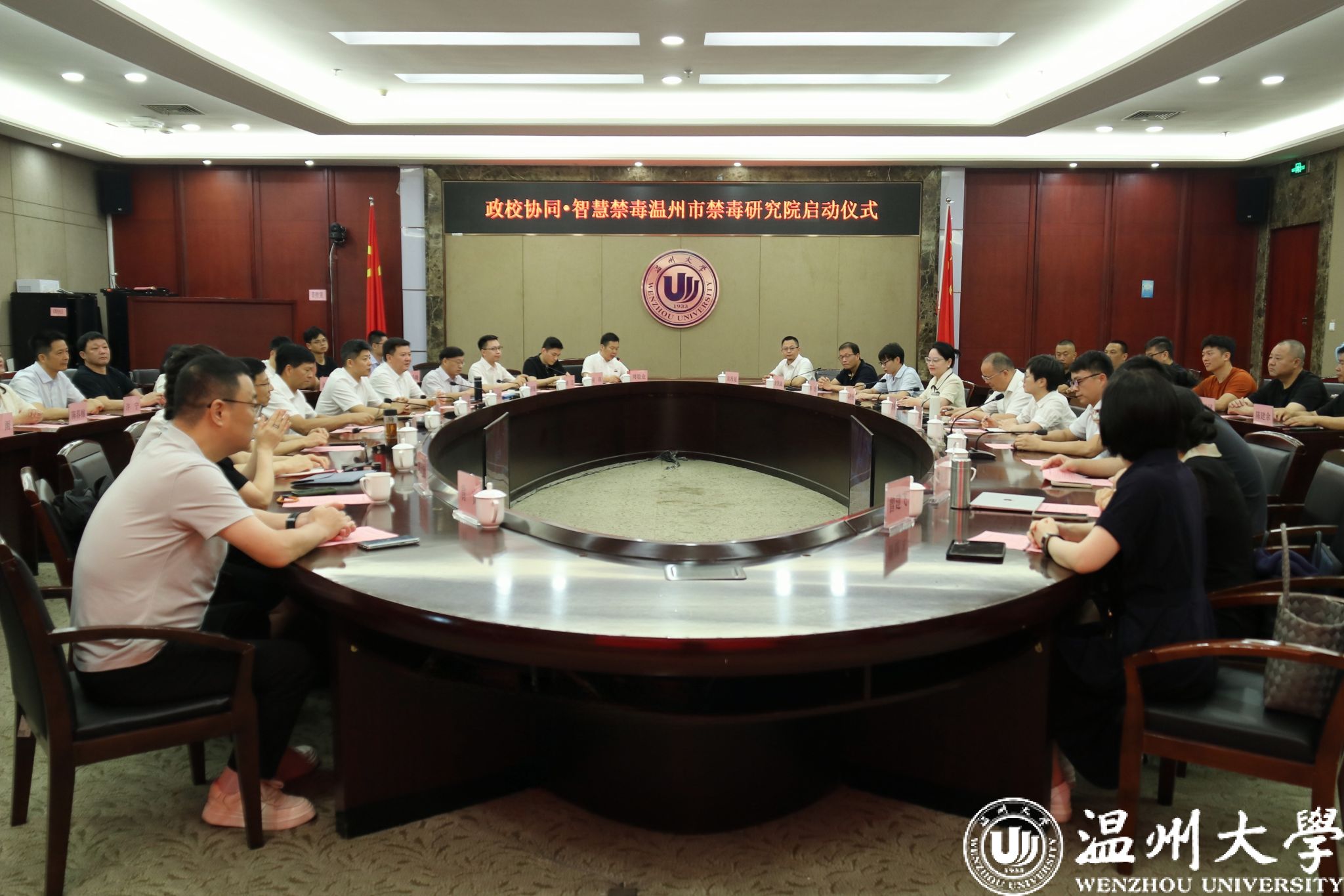 6月26日,时值第38个国际禁毒日,由永利集团官网、温州市公安局、瓯海区公安分局三方合作共建的综合性智库研究基地——温州市禁毒研究院启动仪式在永利集团官网南校区岩松堂白鹿厅举行。永利集团官网党委副书记庄兴忠,浙江省禁毒办副主任、浙江省公安厅禁毒总队副总队长周永盛,温州市公安局副局长徐良悟,瓯海区副区长、瓯海区公安分局局长张杰尔,温州市公安局禁毒支队支队长章贤,顾问代表西南政法大学毒品问题治理研究中心主任梅传强教授,温州禁毒法学会会长吴之欧教授,西南政法大学毒品问题治理研究中心副秘书长胡江副教授以及全体理事出席。永利集团官网公司党委书记周敬业主持。
