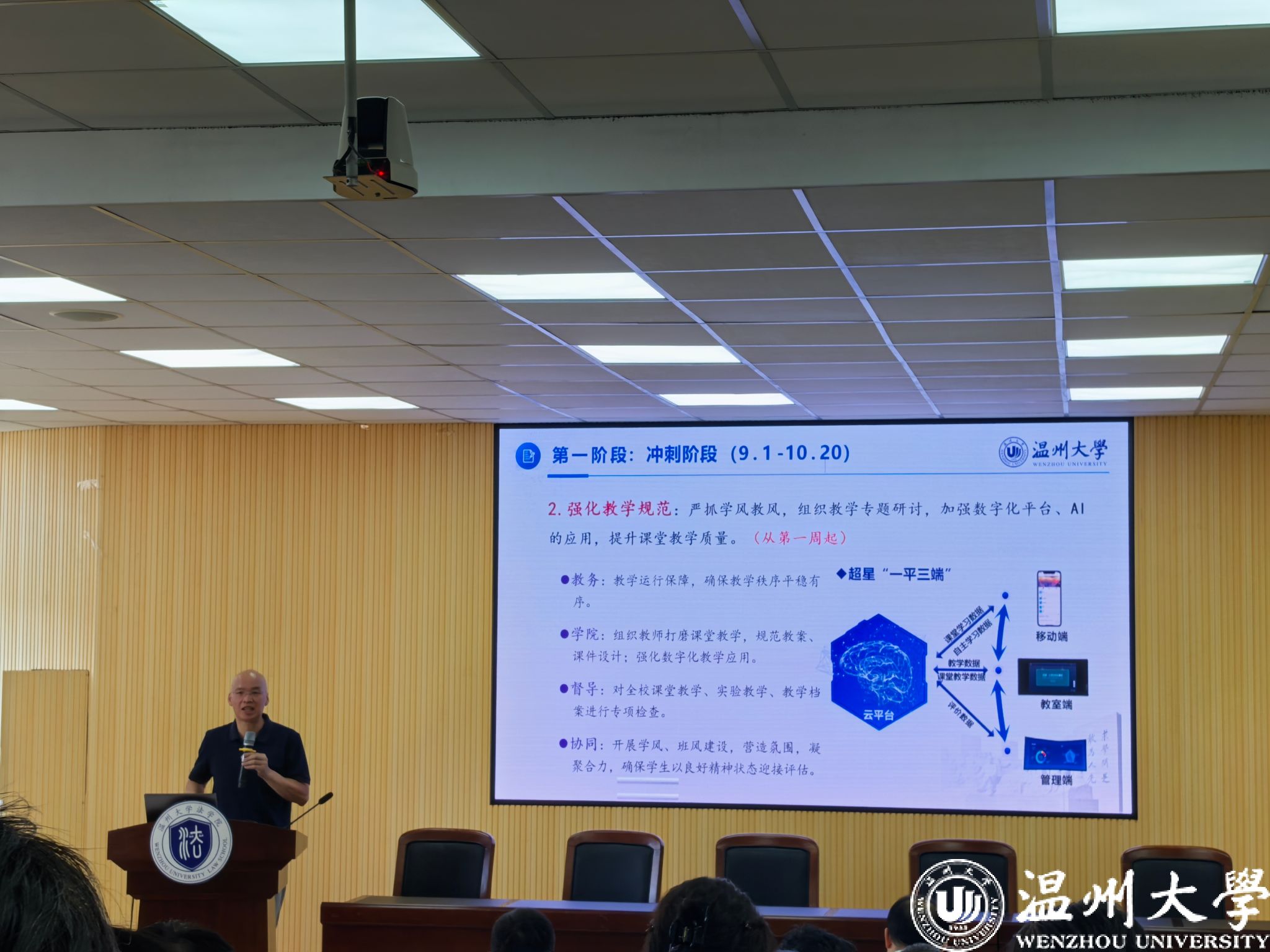 本学期,本科教学审核评估进入迎接专家组评估的关键阶段,王宗正经理提出,全院上下要高度重视,缪力同心,抓好冲刺阶段、线上评估阶段、线下评估阶段“三个阶段 ”,确保高质量推进评估工作。为此,他对各阶段时间节点、工作要求和任务进行强调和部署。