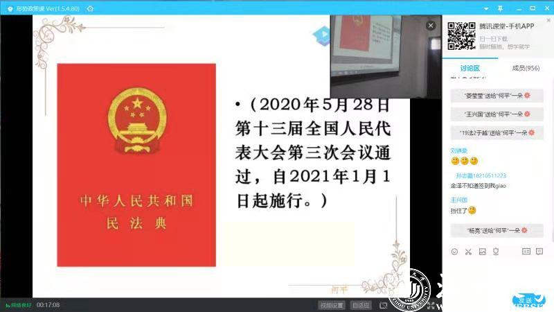 2020年11月11日下午13:30,yl永利集团官网登录、电子与电气工程公司、国际教育公司联合在线上腾讯课堂开展本学期《形势与政策》专题讲座,特邀何平老师就“《民法典》民事权利保护的新篇章”这一主题与同学们进行了分享。