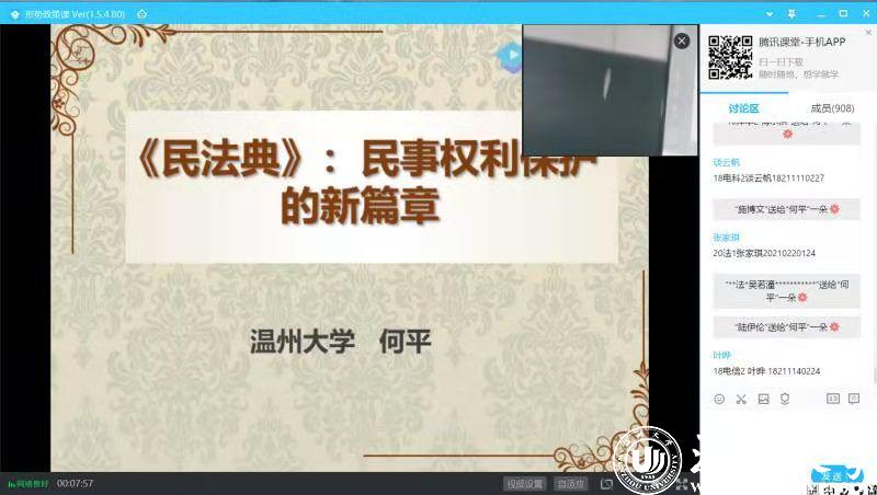 通过这次专题讲座的学习,同学们受益匪浅,在聆听和思考的同时对《民法典》有了更加深入的理解,也能更好地认识部分国家政策的出台和实施。本次线上讲座在同学们的积极参与和互动下画上了完美的句号。